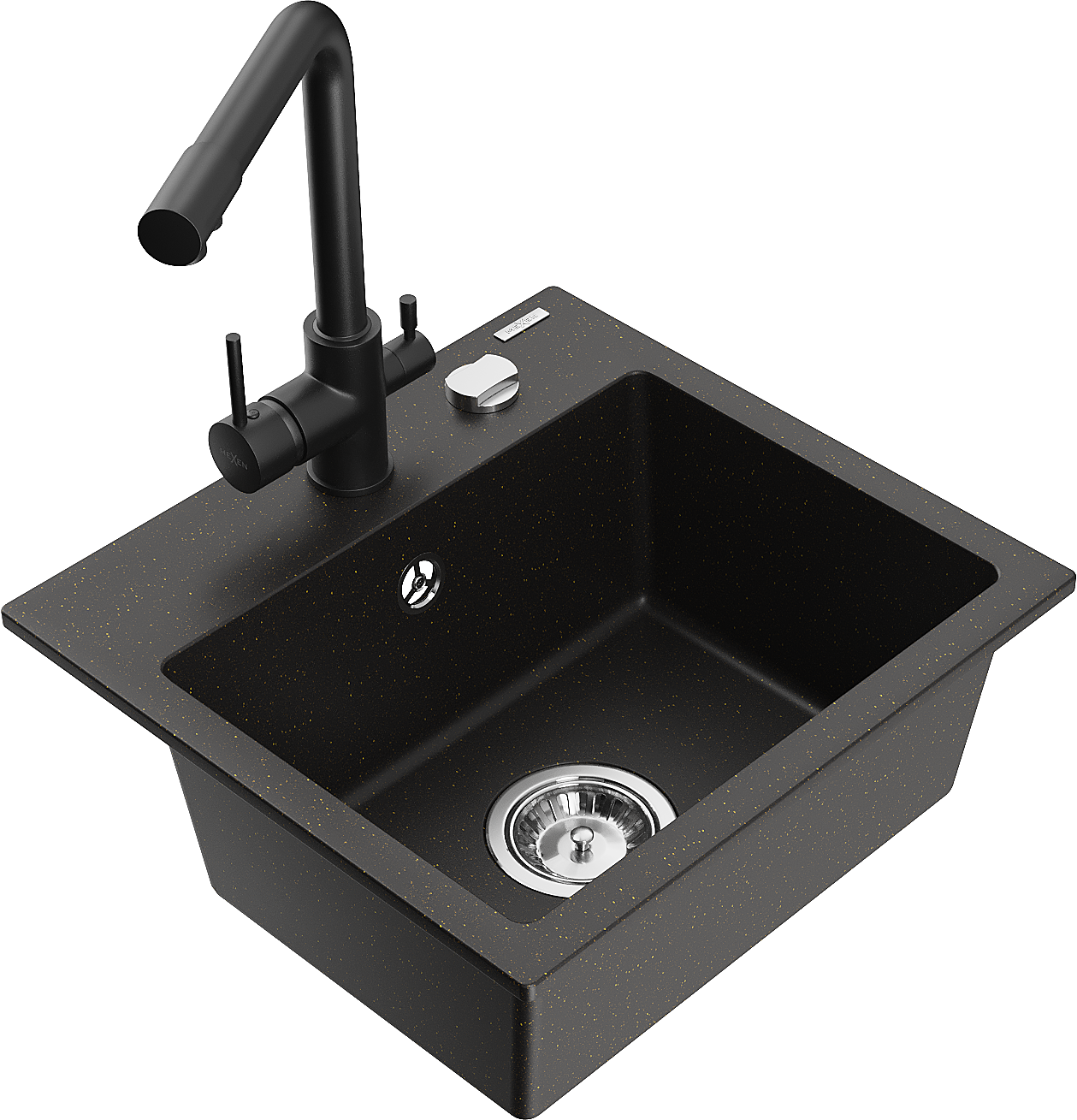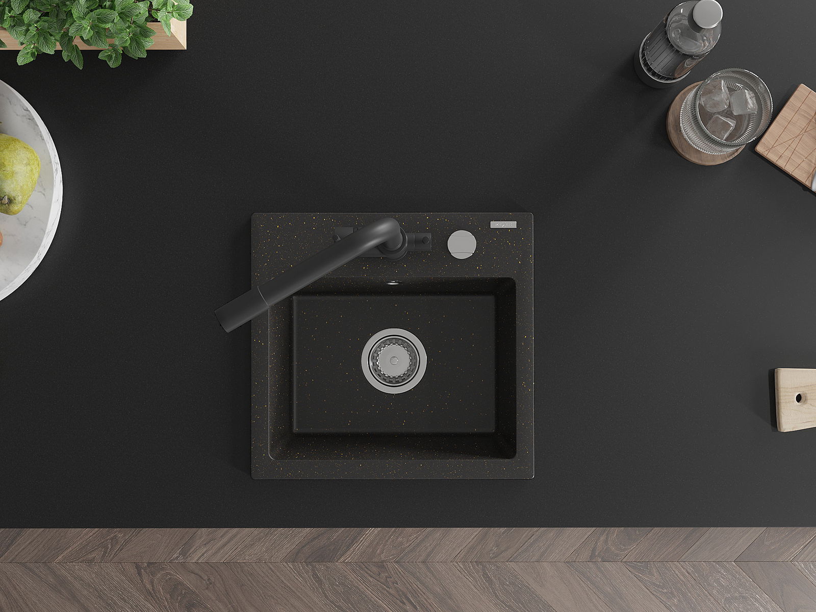 Mexen Milo кухненска мивка от гранит с 1 отделение и с кухненски смесител Duero, черен/златен металик - 6505-75-671600-70