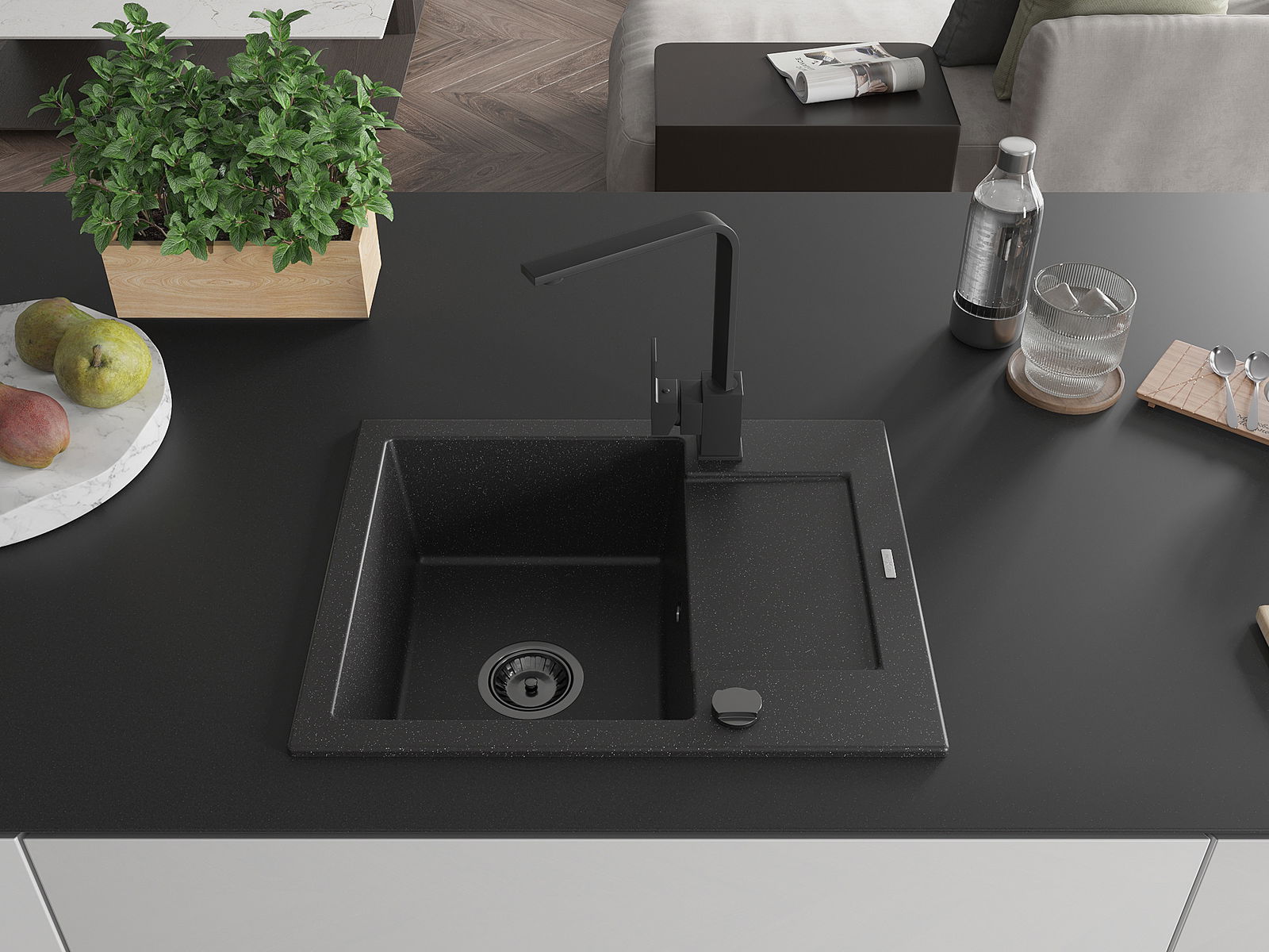 Mexen Enzo гранитна кухненска мивка с 1 отделение, сушилник и кухненски