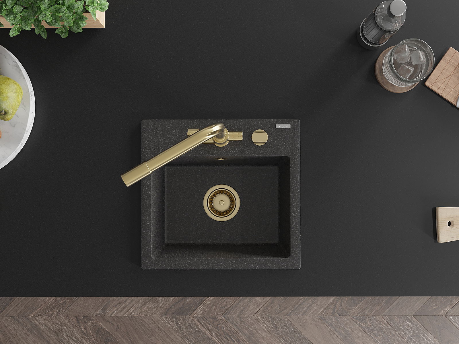 Мивката разполага с предварително издълбан отвор с диаметър 35 мм за самостоятелно изключване. Може да се използва, наред с други неща, за монтаж на дозатор за течност, който ще елиминира наличието на пластмасови бутилки в кухнята и ще й придаде елегантно завършване.