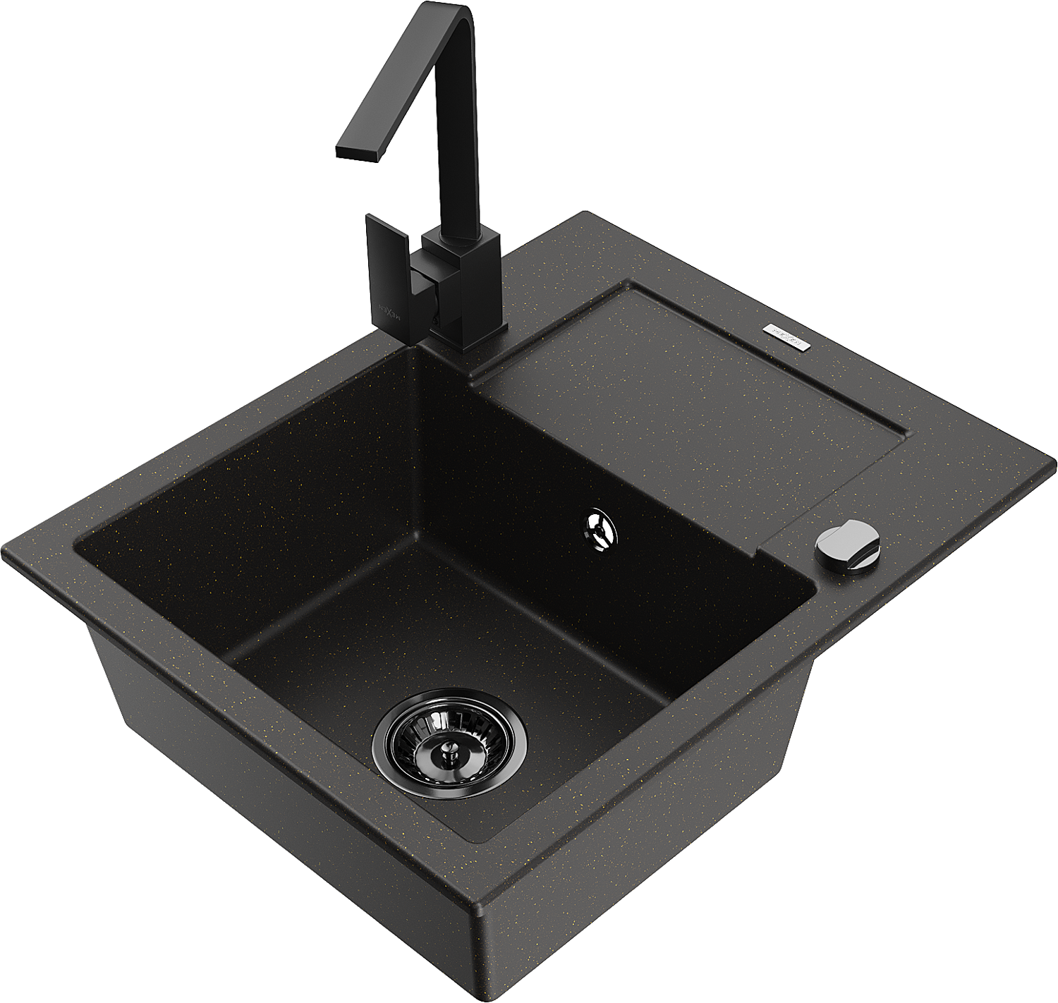 Мекзен Енцо гранитна мивка с 1 камера с дренажна плоча и кухненски смесител Рита, черен/златист металик - 6506-75-670300-70-B