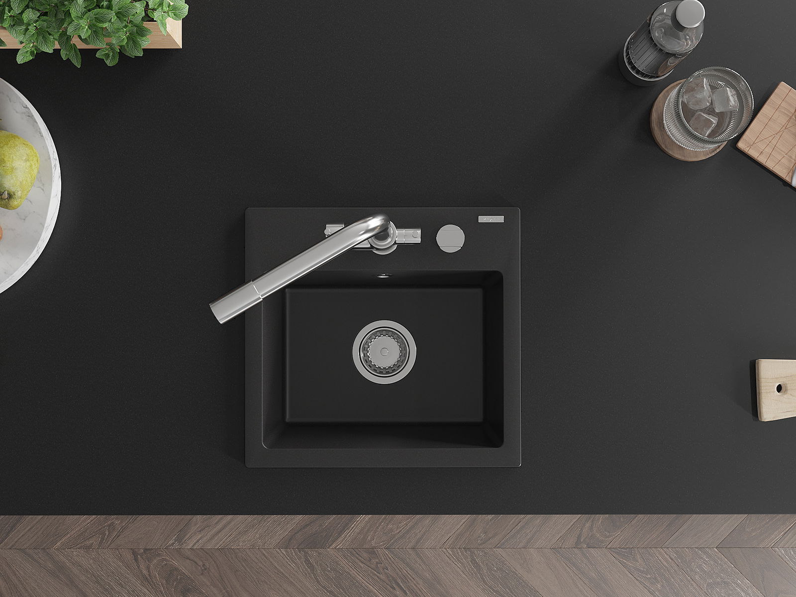 Mexen Milo гранитна мивка с 1 отделение и кухненски смесител Duero, черен - 6505-77-671600-00