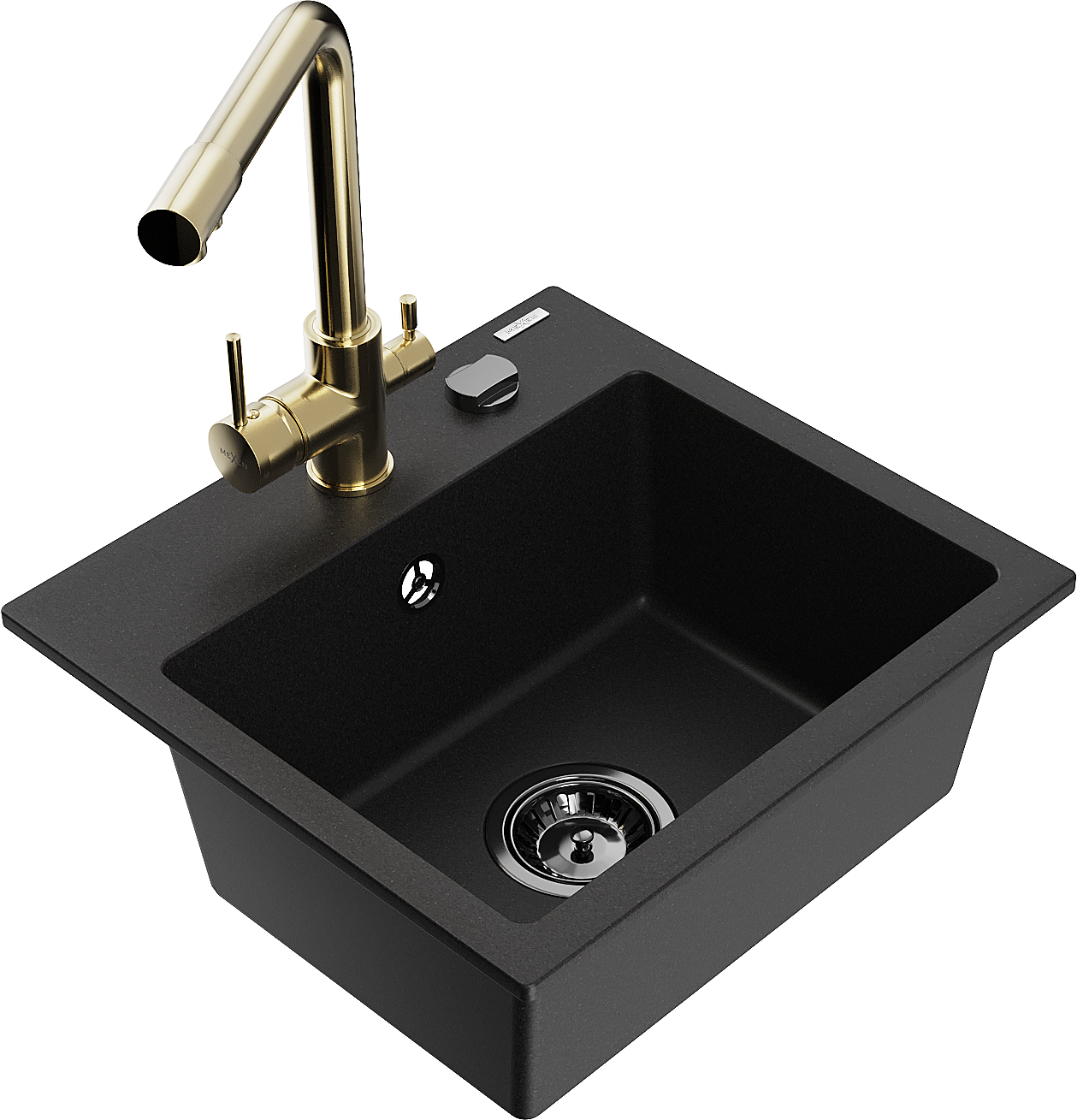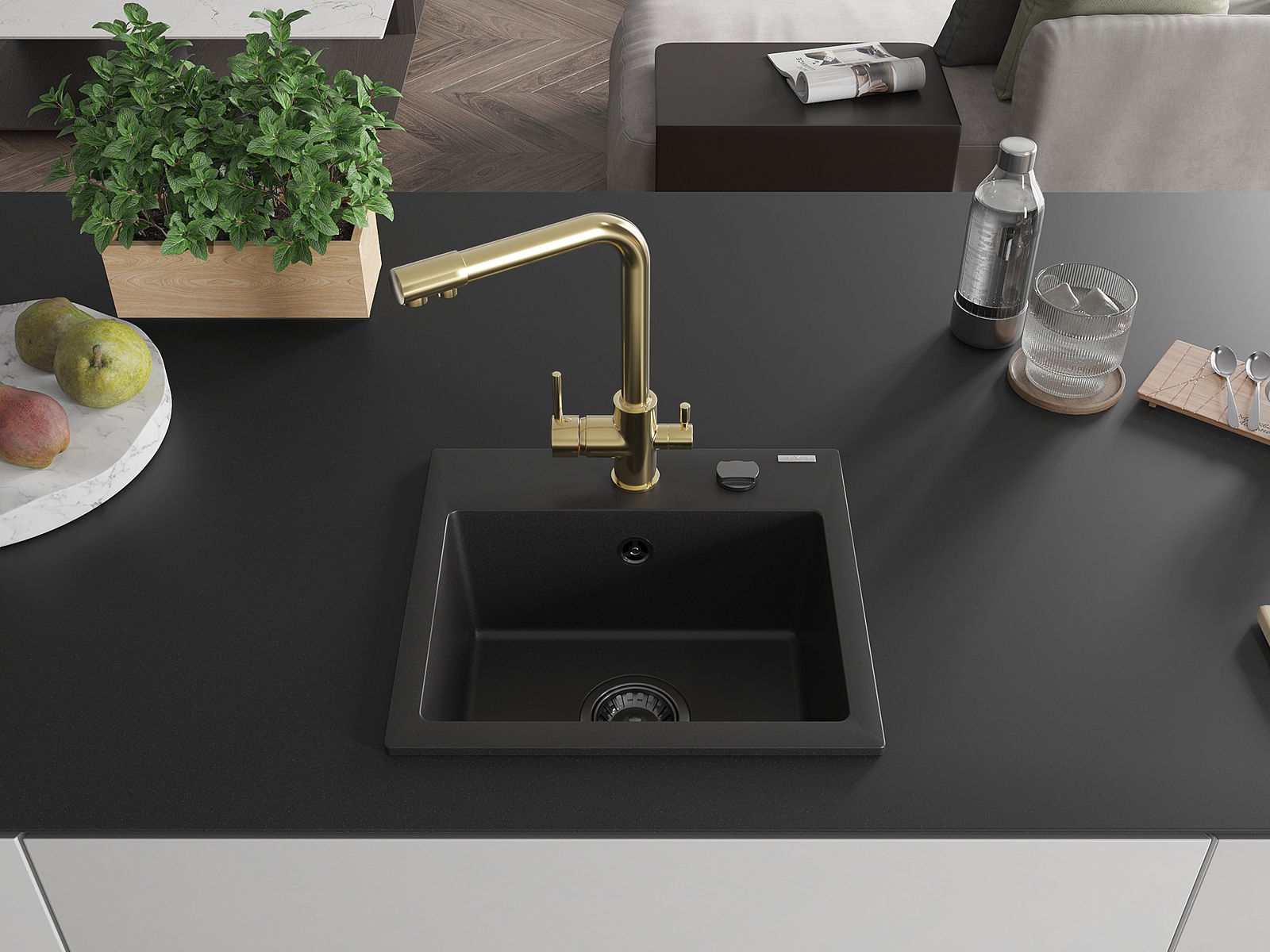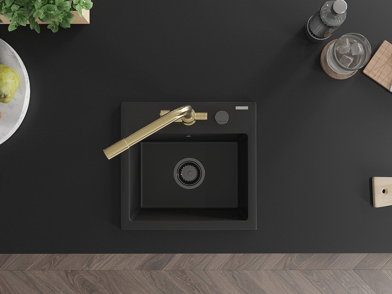 Mexen Milo гранитна кухненска мивка с 1 отделение и кухненски смесител Duero, черен - 6505-77-671600-50-B