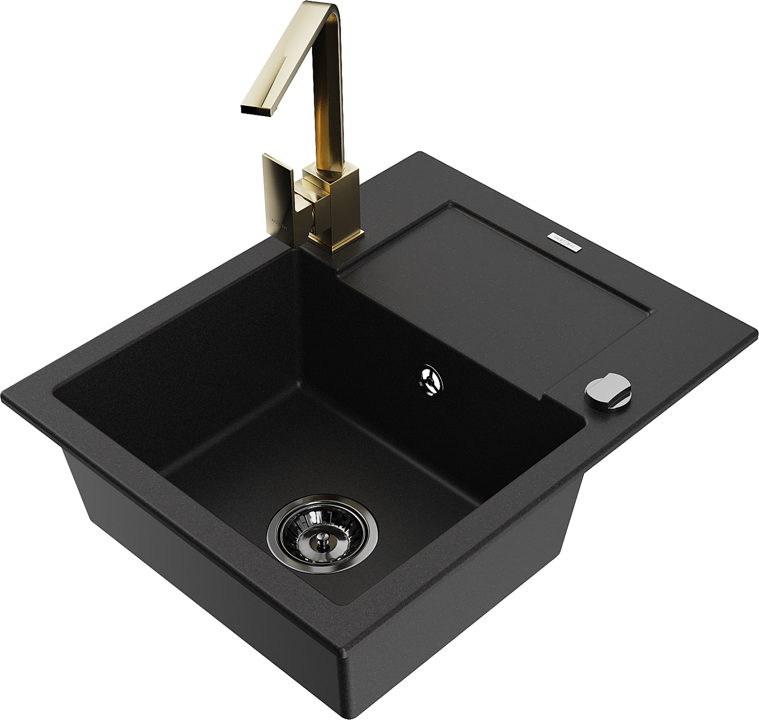 Mexen Enzo гранитна мивка с 1 камера с отцеждач и кухненски смесител Rita, черен - 6506-77-670300-50-B