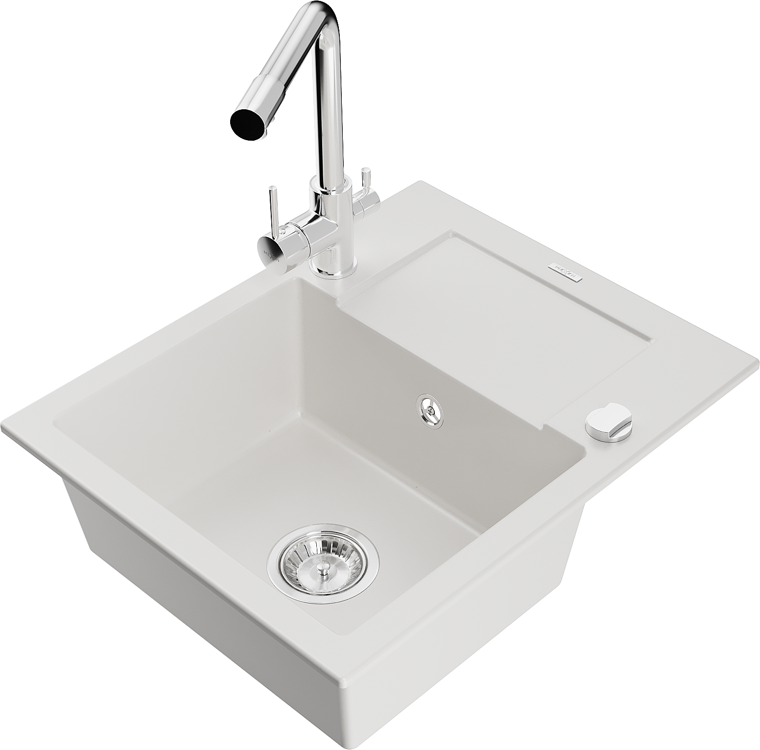 Mexen Enzo гранитна кухненска мивка с 1 отделение и отцедник и кухненски смесител Duero, бял - 6506-20-671600-00