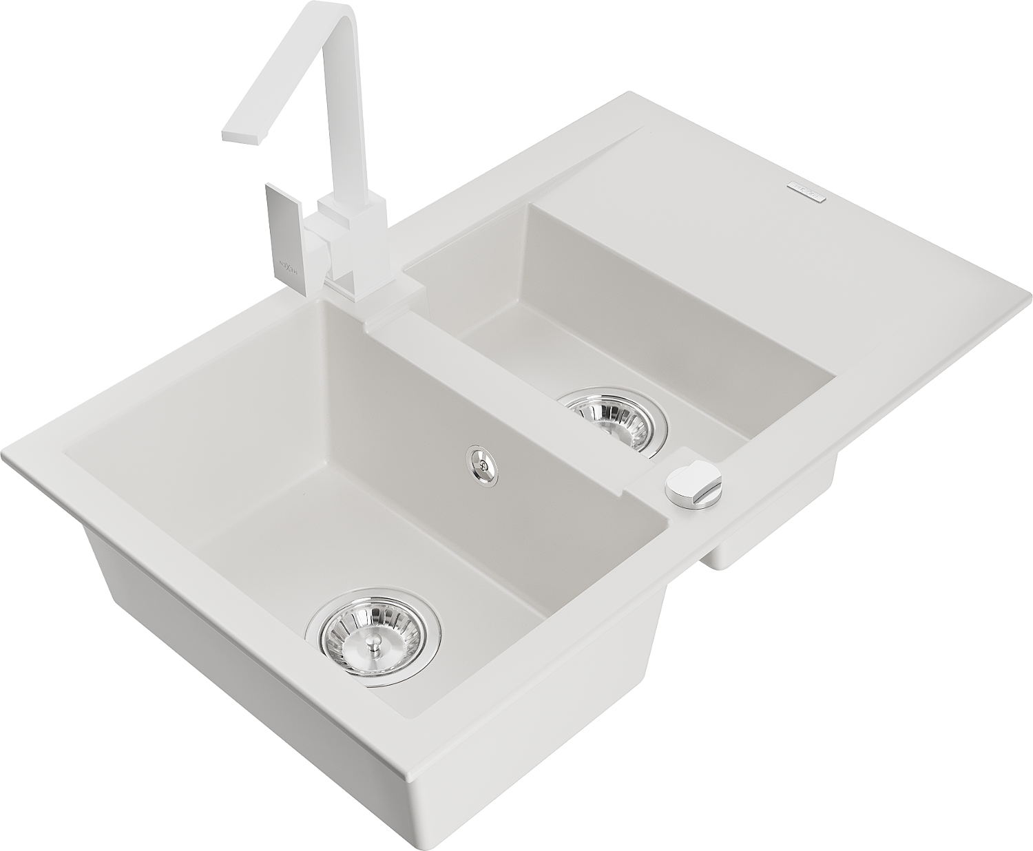 Mexen Gaspar гранитна мивка с 1,5 камери и отцедник и кухненски смесител Rita, бял - 6507-20-670300-20
