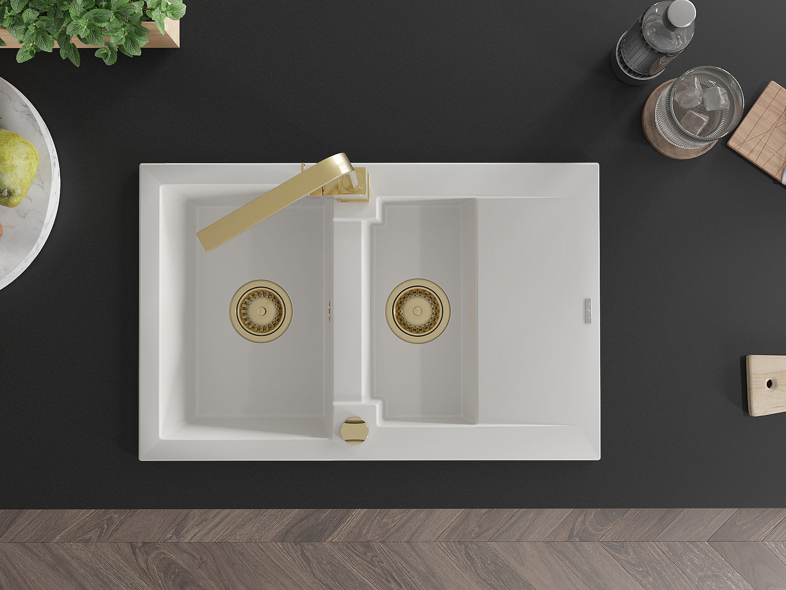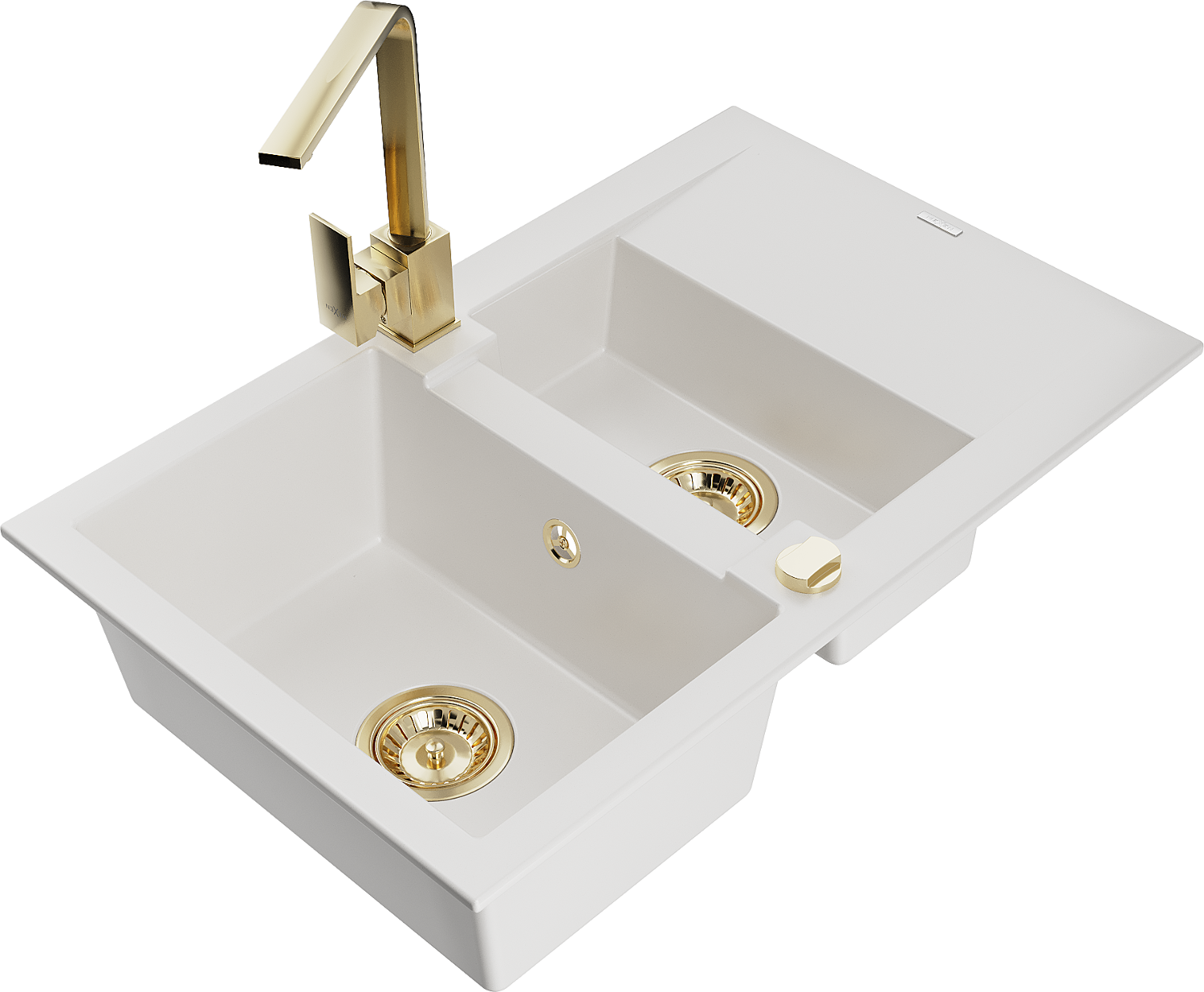 Mexen Gaspar гранитна мивка с 1,5 отделения с отцедник и кухненски смесител Rita, бял - 6507-20-670300-50