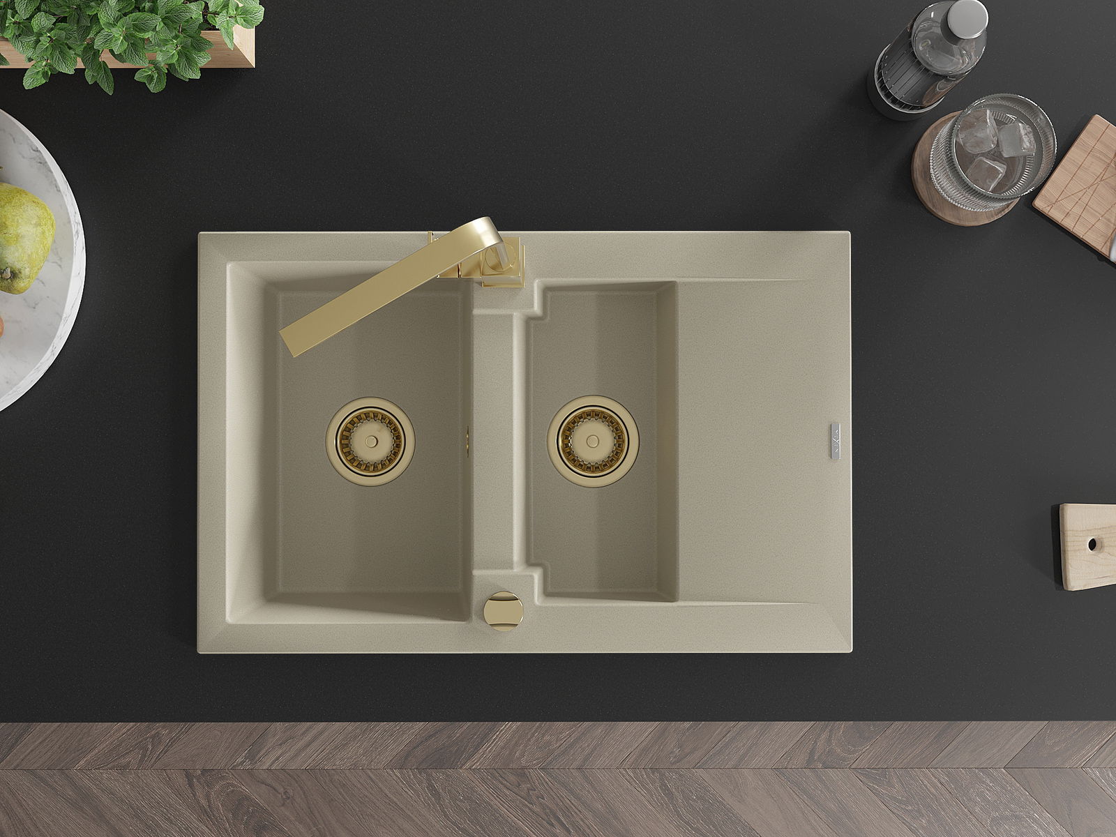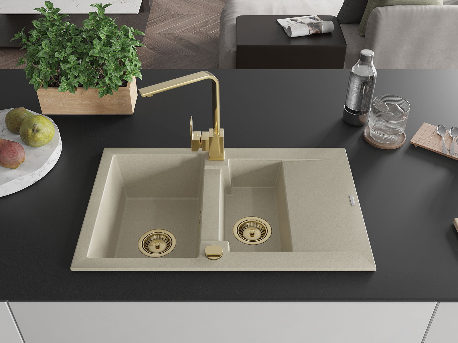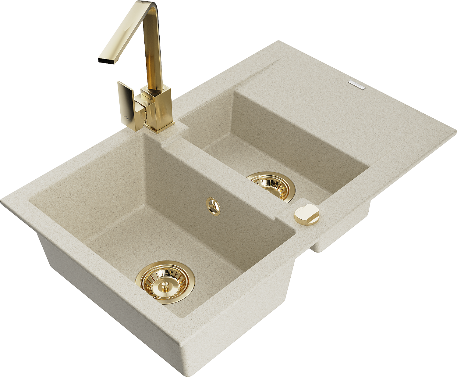 Mexen Gaspar мивка от гранит 1,5-канална с отцедник и кухненски смесител Rita, бежов - 6507-69-670300-50