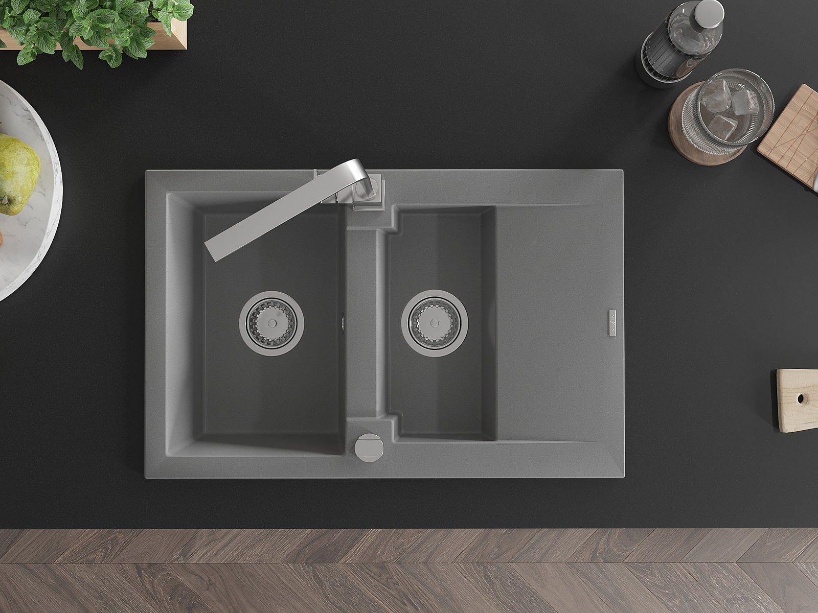 Mexen Gaspar мивка от гранит 1,5-камерна с отцедник и кухненски смесител Rita, сив - 6507-71-670300-00