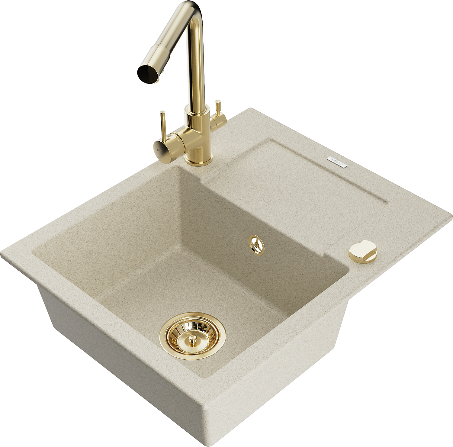 Mexen Enzo гранитна мивка с 1 камера с отцедник и кухненски смесител Duero, бежов - 6506-69-671600-50