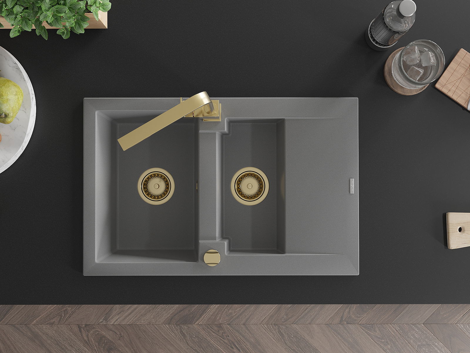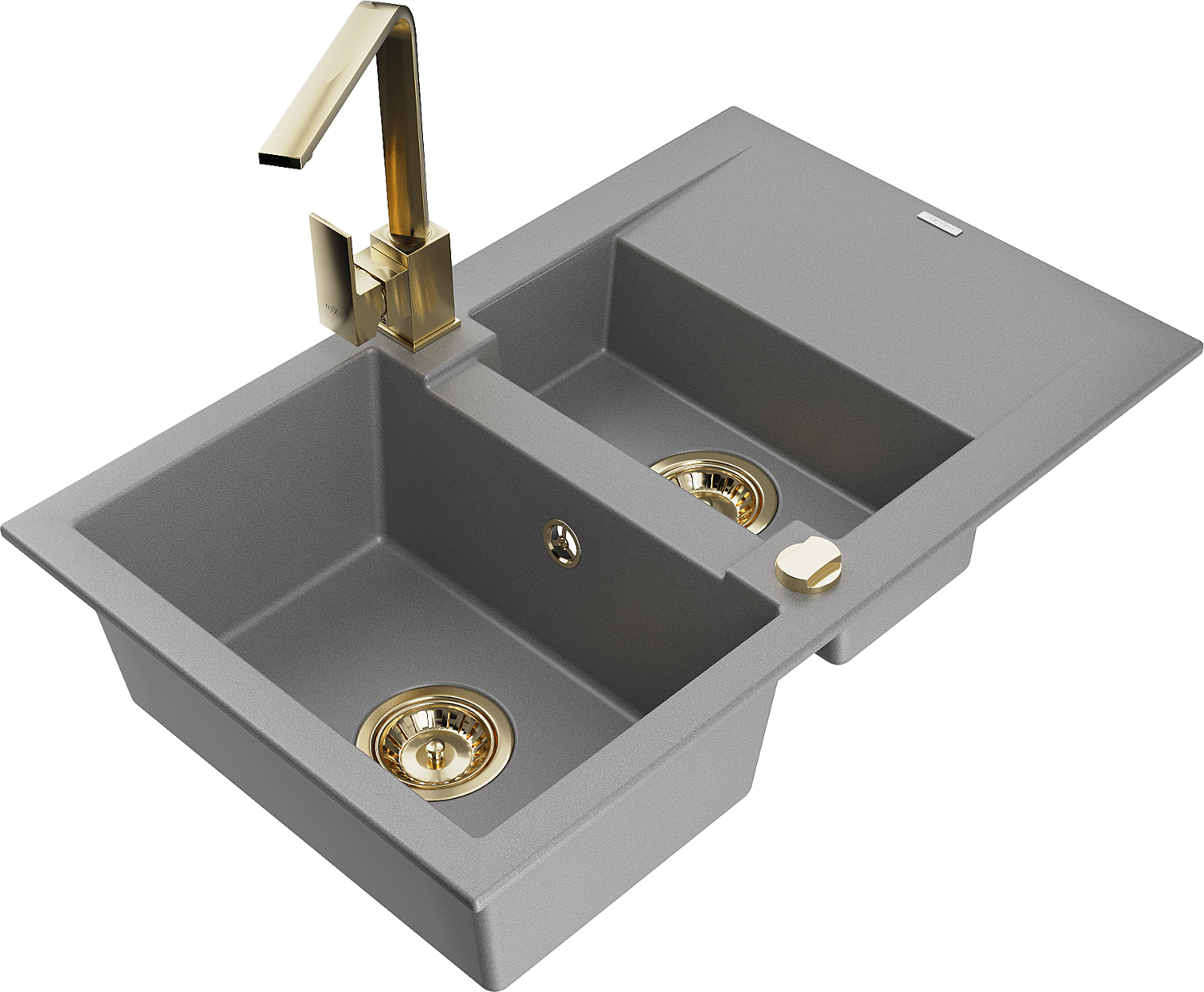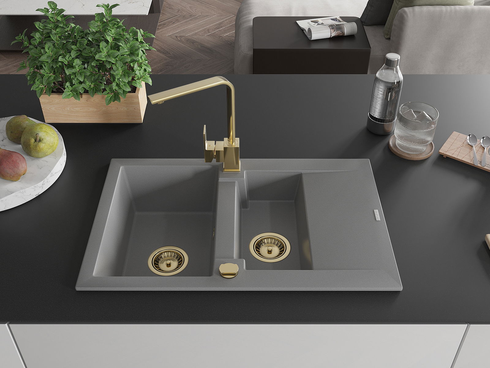 Mexen Gaspar гранитна мивка 1,5-камерна с отцедник и кухненски смесител Rita, сив - 6507-71-670300-50
