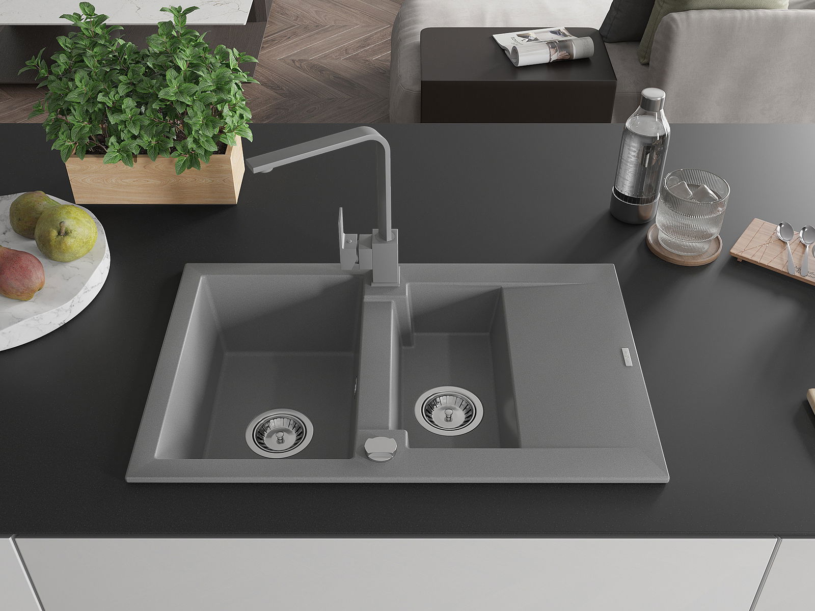 Мивката е направена от висококачествен гранит. Това е елегантно и най -вече практично допълнение към всяка кухня, независимо от нейния стил. Висококачествената и гранитна издръжливост осигуряват много години употреба.