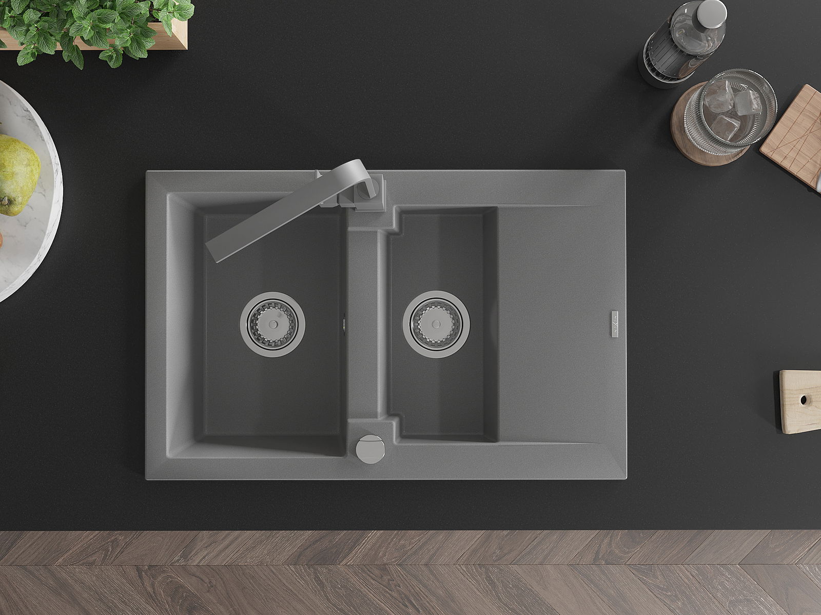 Mexen Gaspar гранитна мивка с 1,5 камери с отцедник и кухненски смесител Rita, сив - 6507-71-670300-71