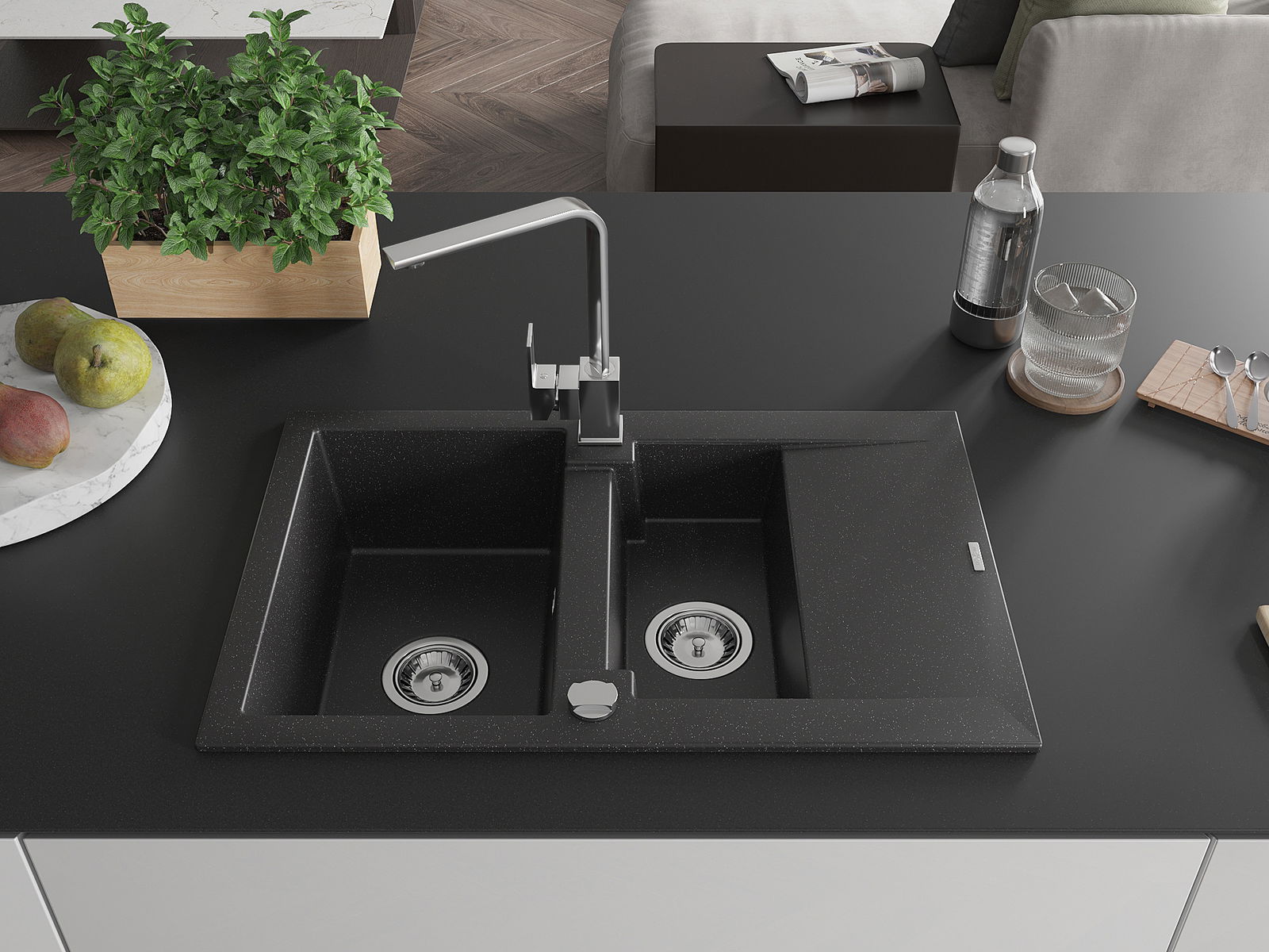 Мивката е направена от висококачествен гранит. Това е елегантно и най -вече практично допълнение към всяка кухня, независимо от нейния стил. Висококачествената и гранитна издръжливост осигуряват много години употреба.