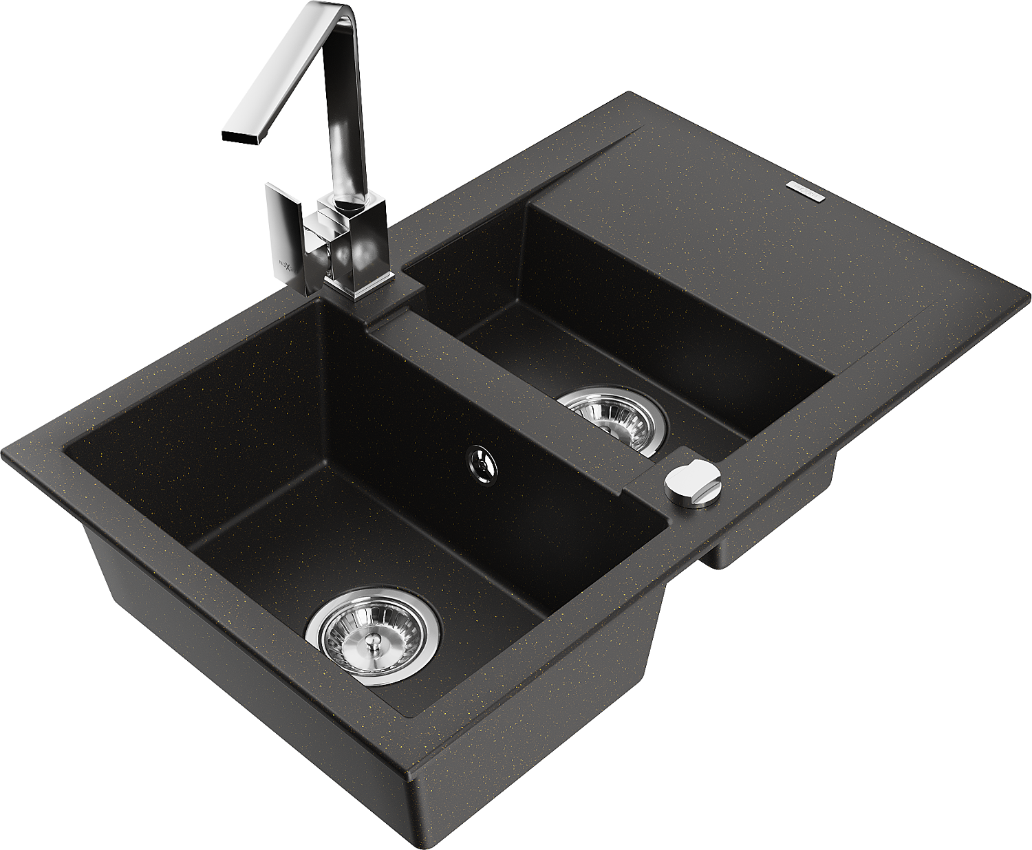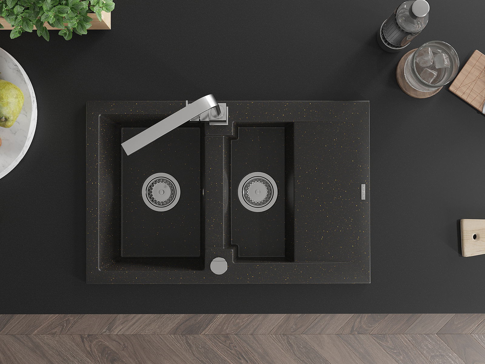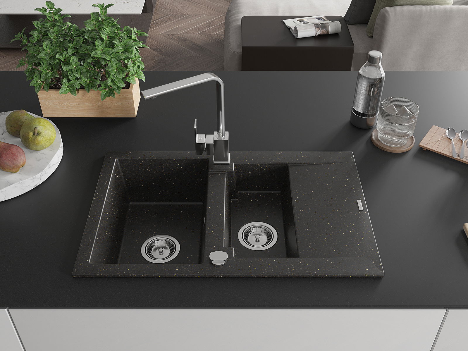 Метен Гаспар гранитна мивка с 1,5 камери с отцедник и кухненски смесител Рита, черен/златен - 6507-75-670300-00
