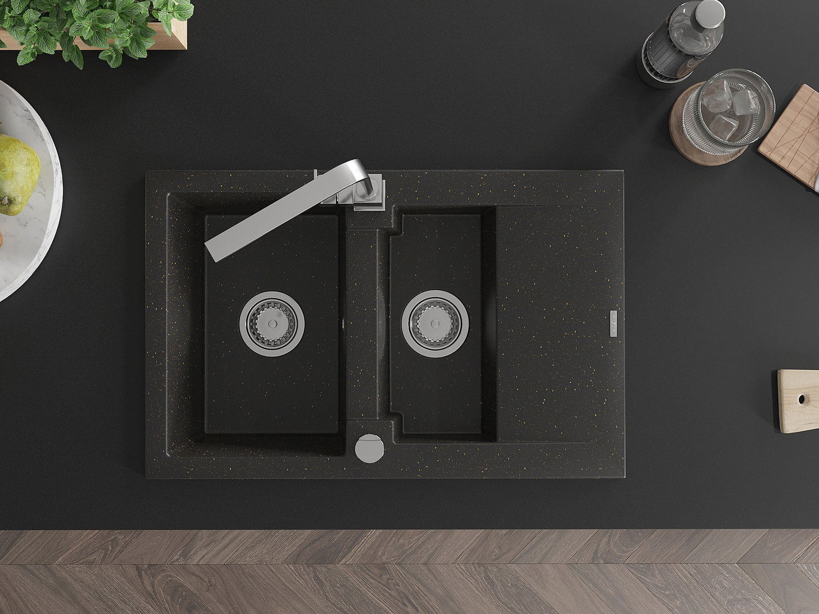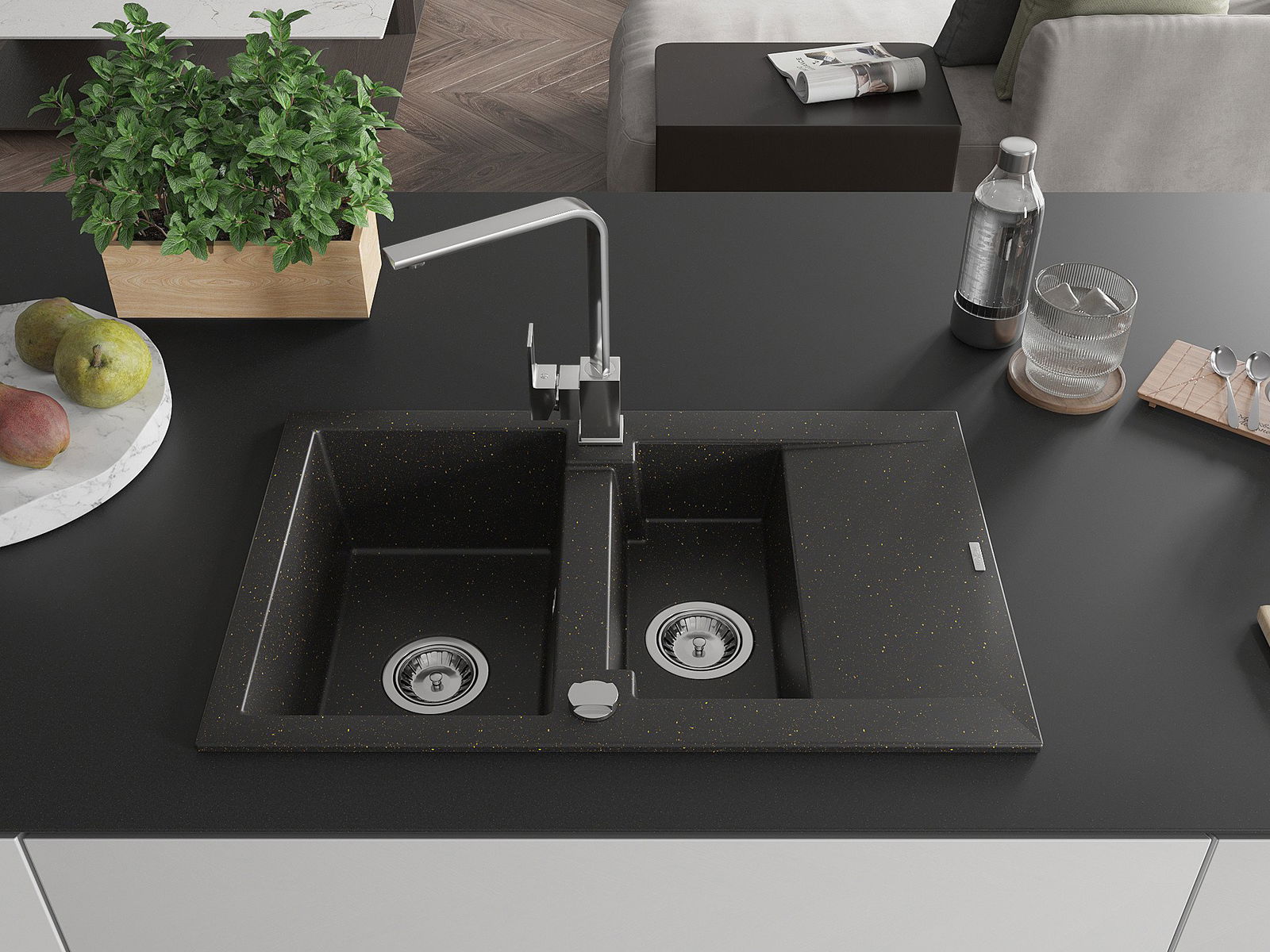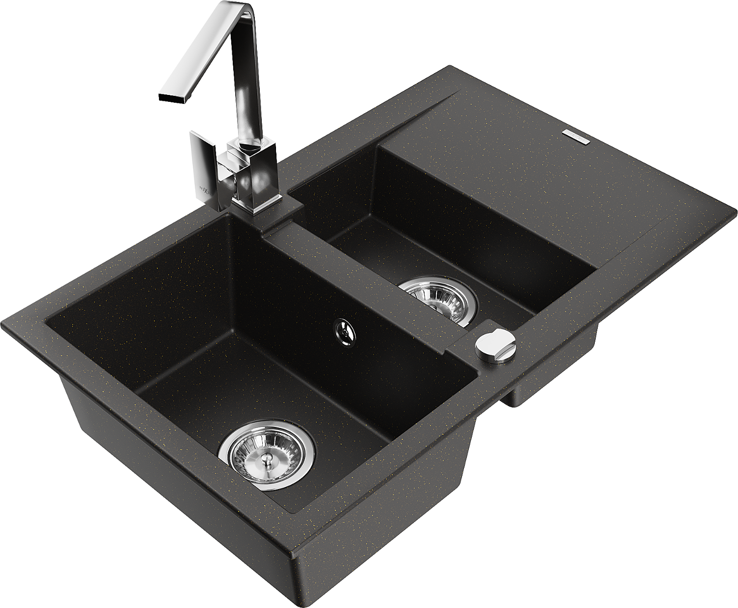 Mexen Gaspar гранитна мивка 1,5-камерна с отцедник и кухненски смесител Rita,