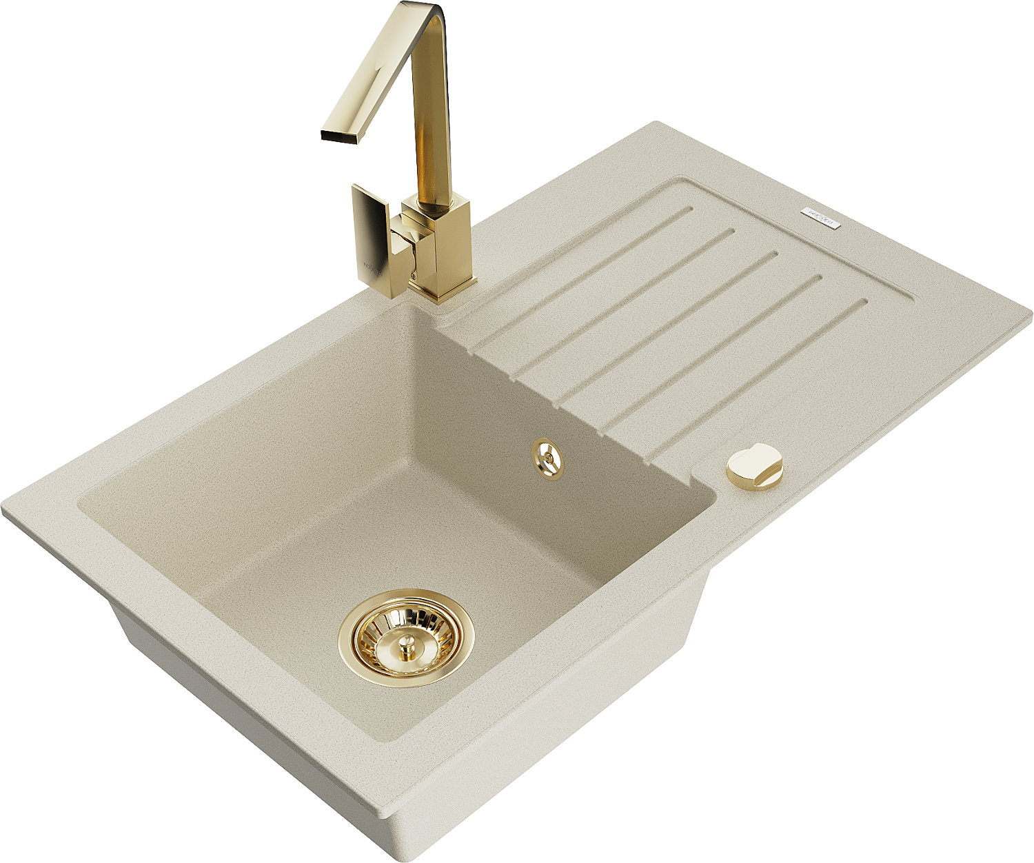 Mexen Pablo гранитна мивка с една камера с отцедник и кухненски смесител Rita, бежов - 6510-69-670300-50