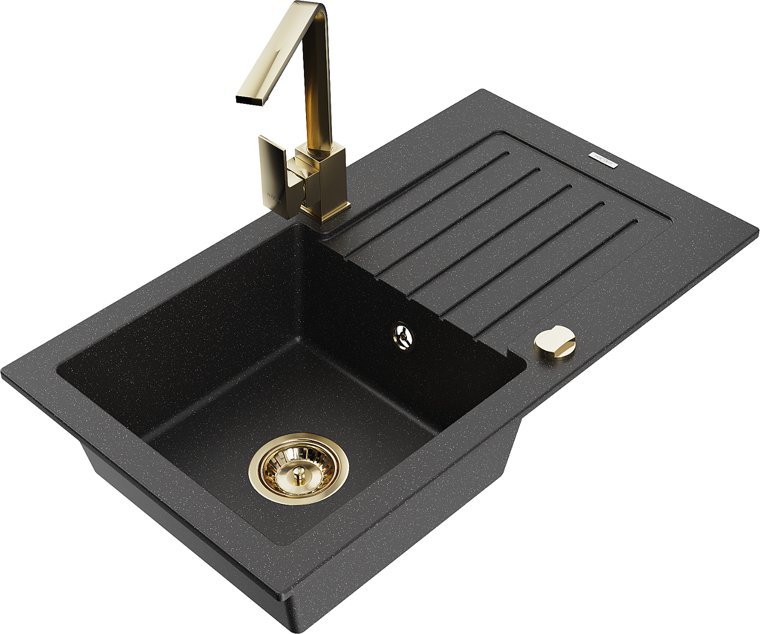 Mexen Pablo гранитна мивка с една купа със сушилня и кухненски смесител Rita, черен/сребрист металик- 6510-73-670300-50
