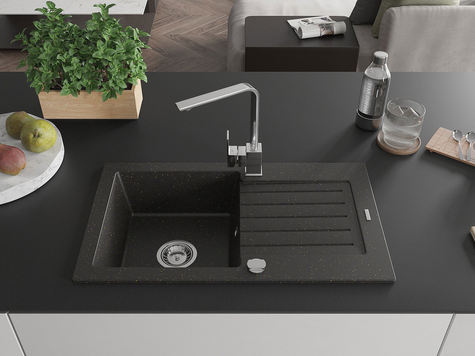 Mexen Pablo гранитна мивка с 1 камера с отцедник и кухненски смесител Rita,