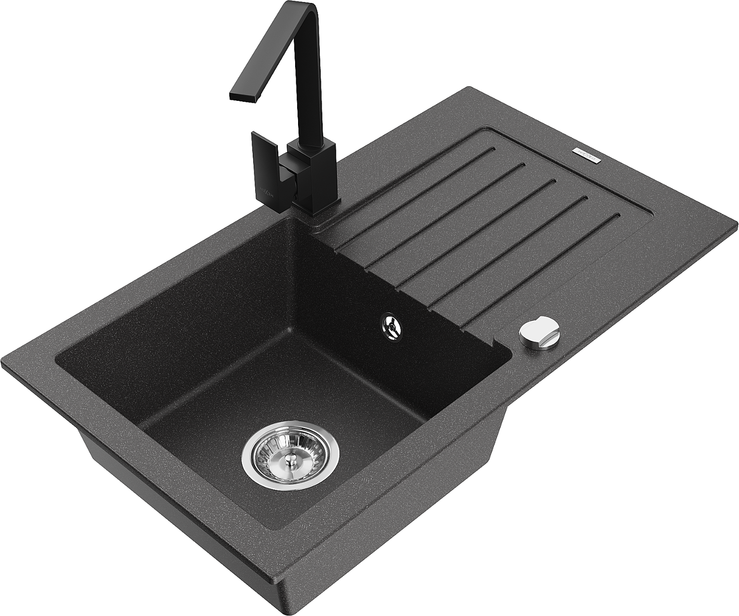 Mexen Pablo гранитна мивка с 1 отделение и изцеждач, и кухненски смесител Rita, черен накъсан - 6510-76-670300-70