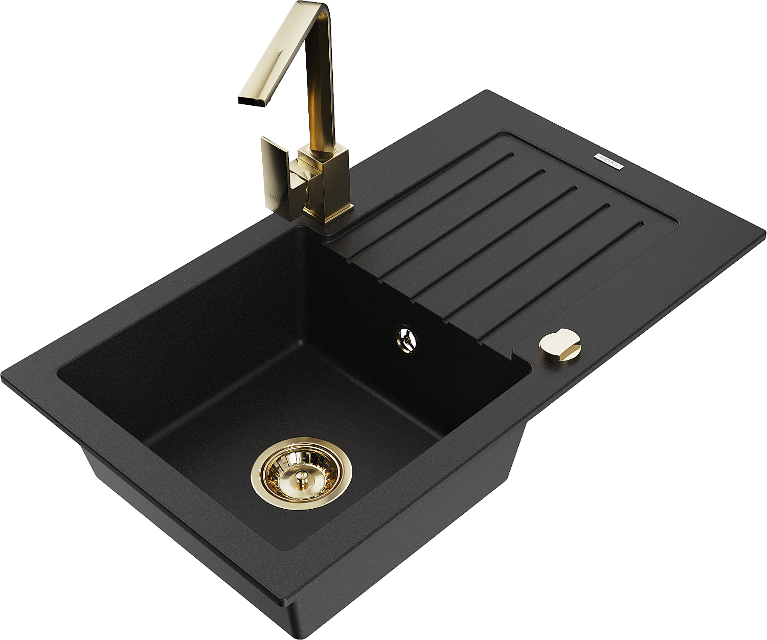 Mexen Pablo еднокоморна гранитна мивка с отцедник и кухненски смесител Rita, черен - 6510-77-670300-50