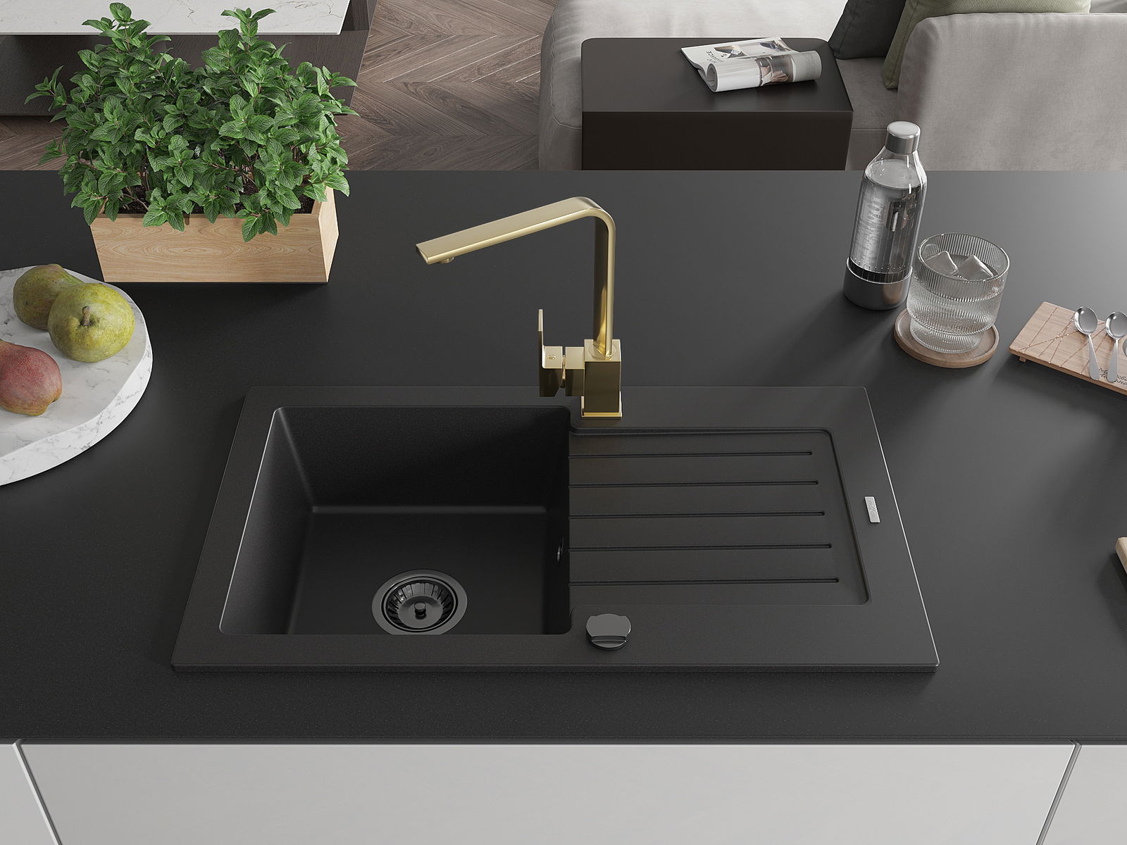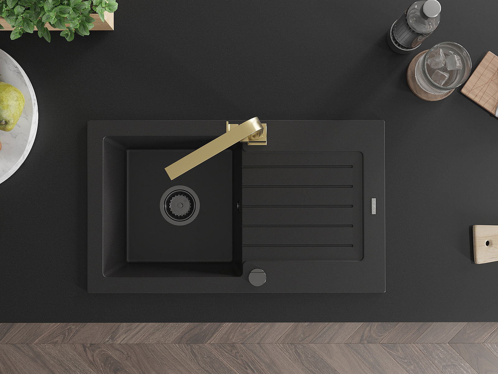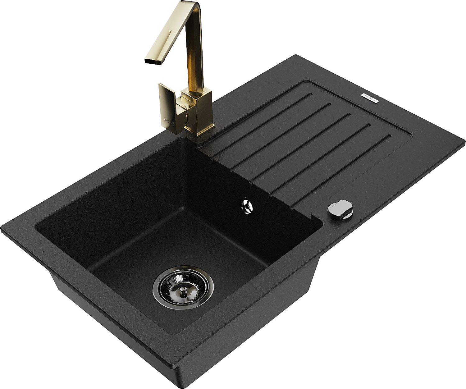 Mexen Pablo гранитна мивка с една камера, отцедник и кухненски смесител Rita, черен - 6510-77-670300-50-B