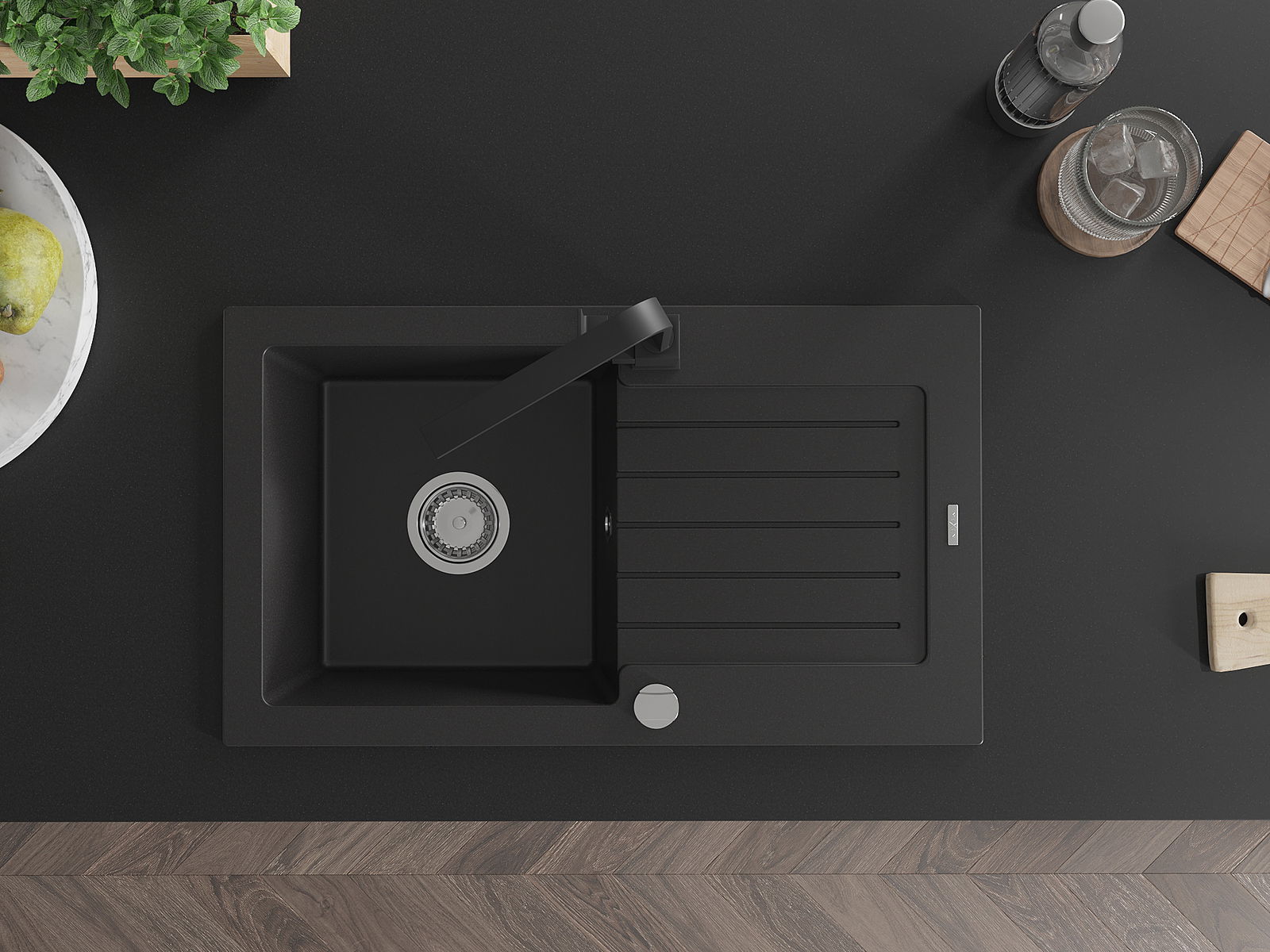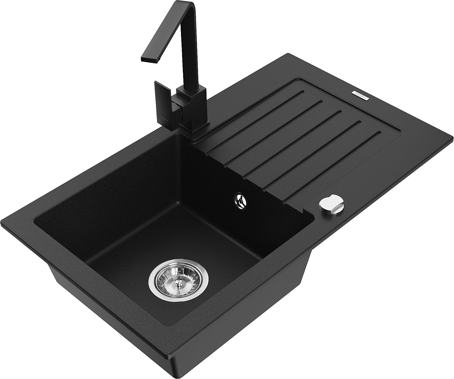 Mexen Pablo мивка гранитна еднокамерна с отцедник и кухненски батерия Rita, черна - 6510-77-670300-70