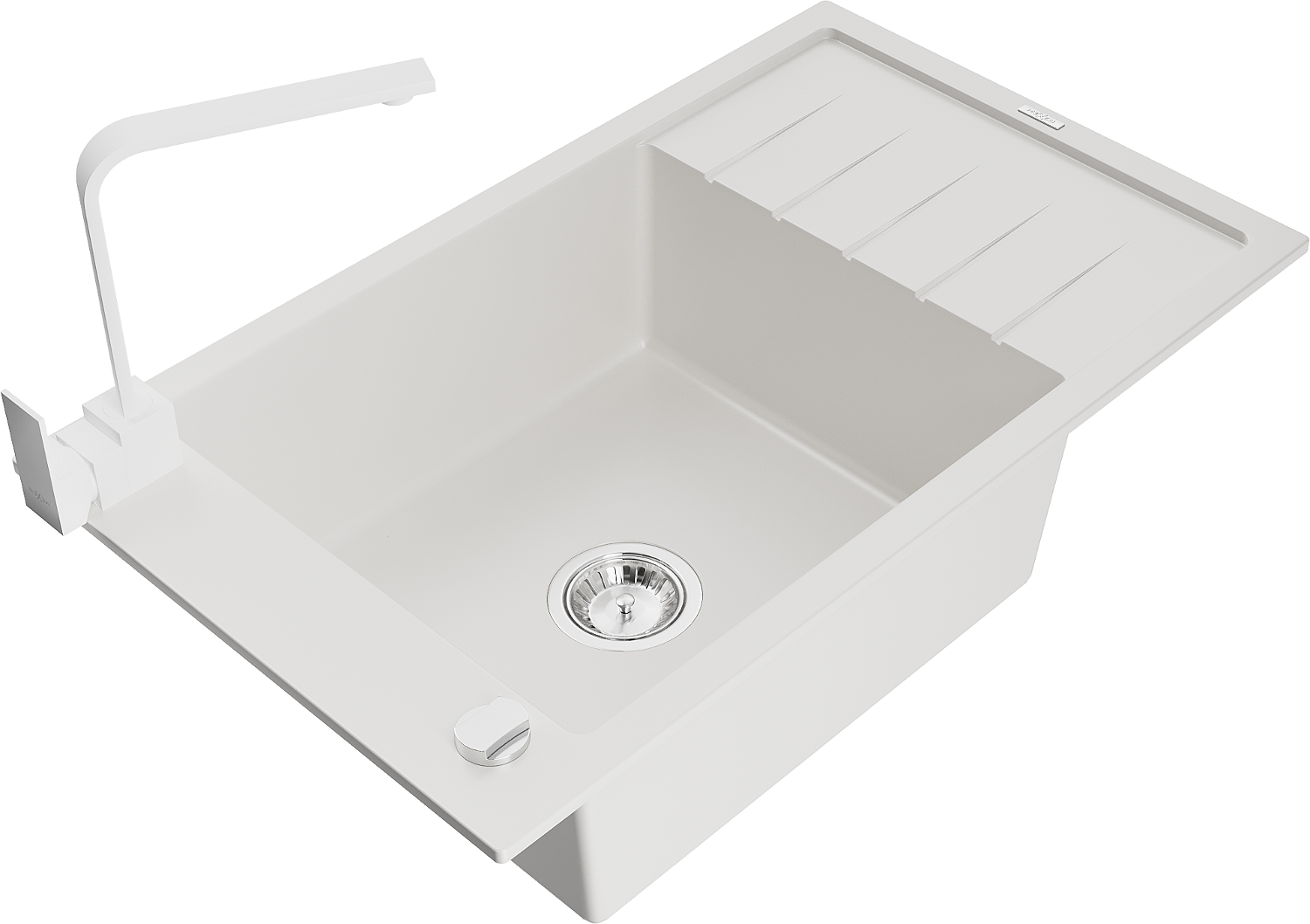 Mexen Elias гранитна мивка с 1 корито с отцедник и кухненски смесител Rita, бял - 6511-20-670300-20
