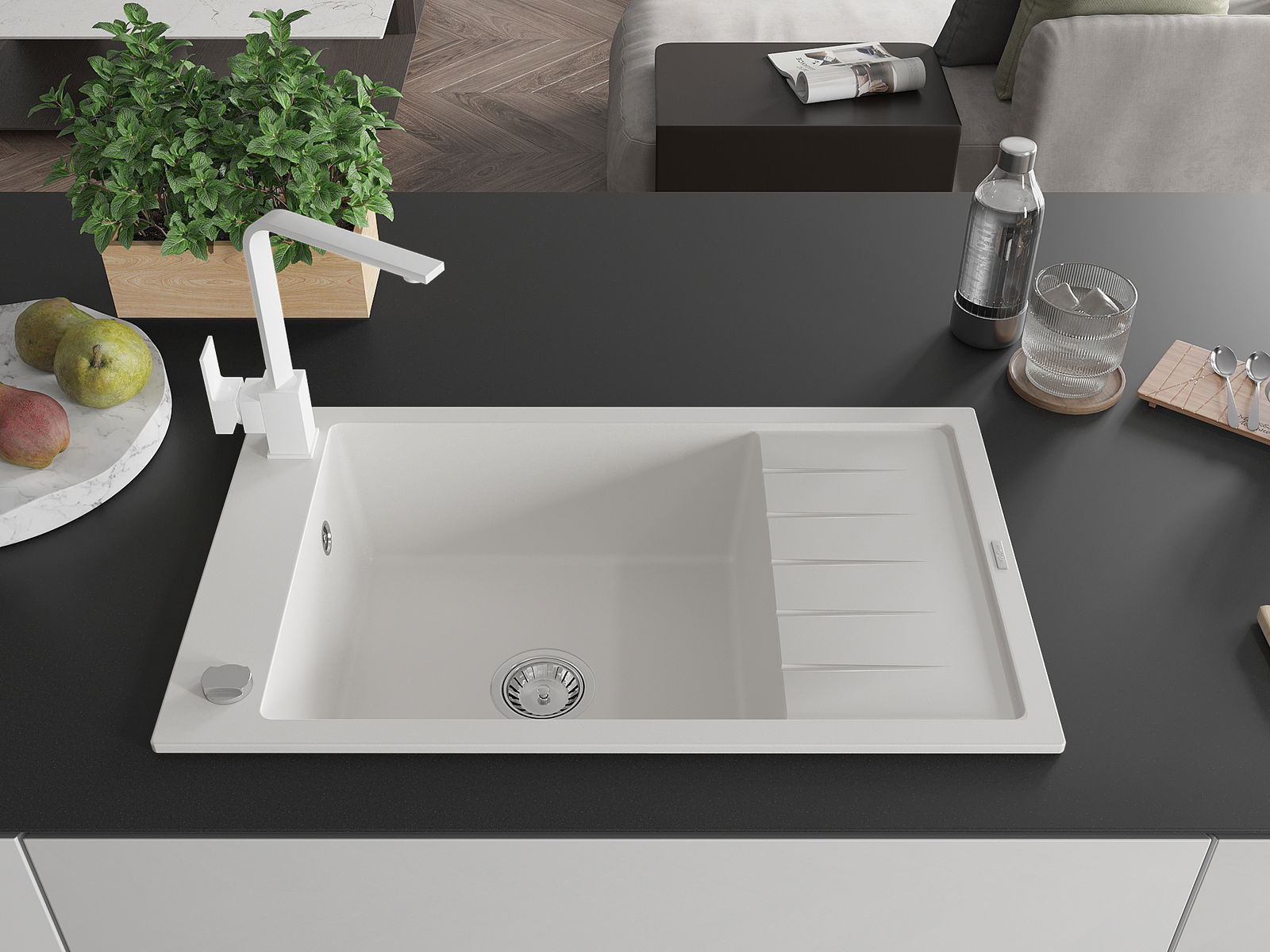 Повърхността на мивката е устойчива на петна и обезцветяване, благодарение на които е лесно да се почиства и запазва цвета си за дълго време. Естетически и практически допълващи всяка кухня.