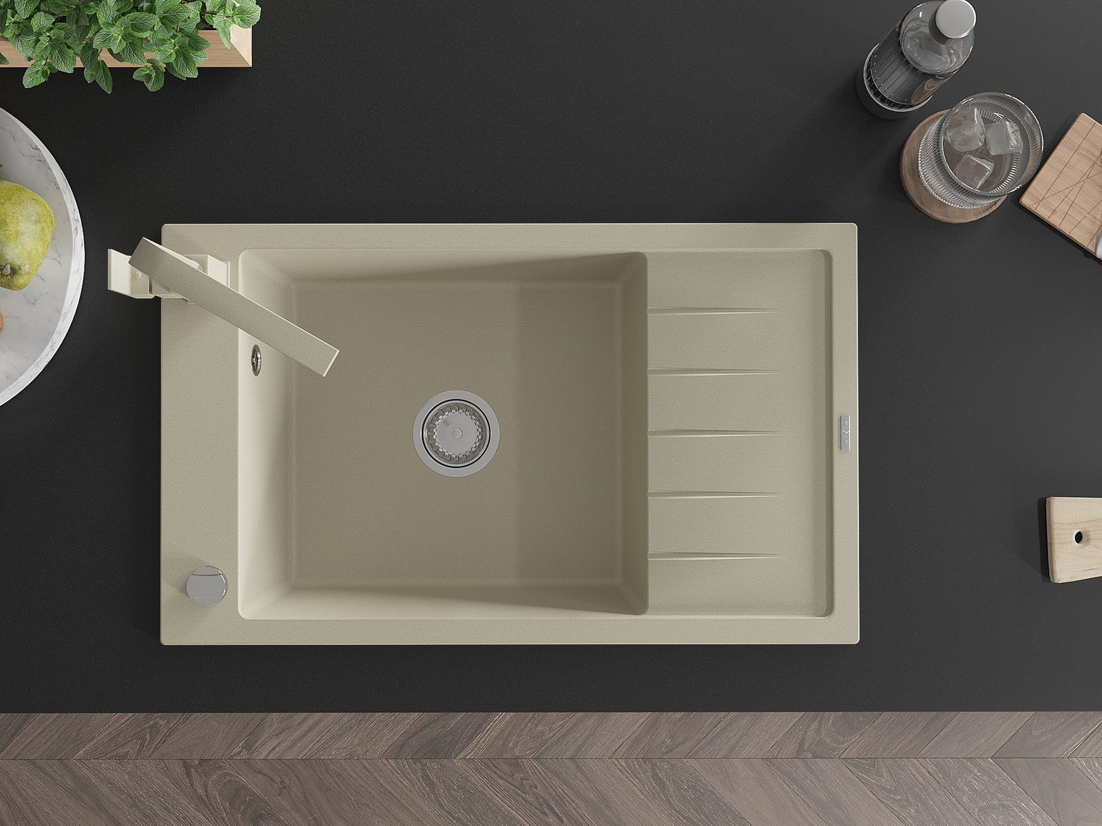 Mexen Elias еднокамерна гранитна мивка с отцедник и кухненски смесител Rita, бежов - 6511-69-670300-69