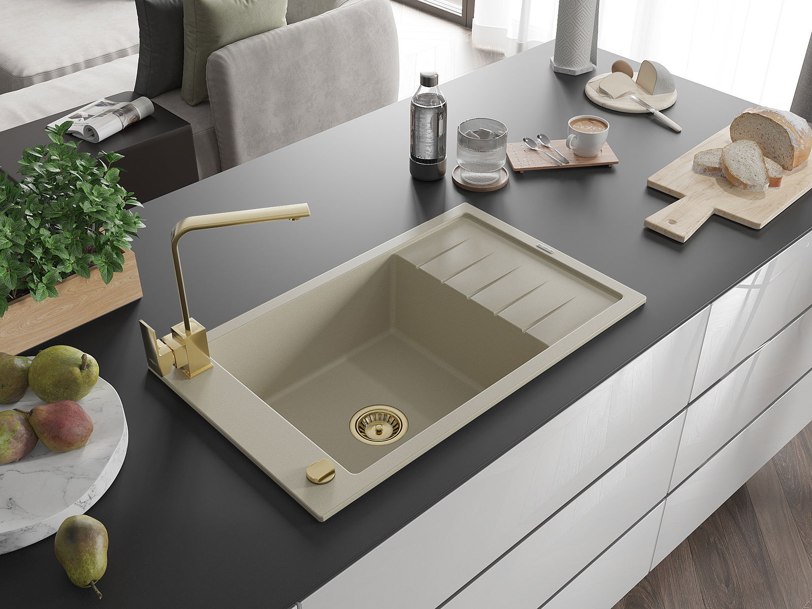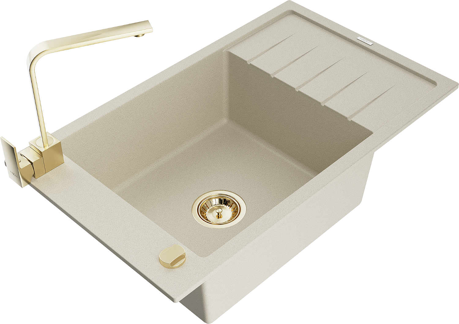 Mexen Elias гранитна мивка с една камера и отцедник и кухненски смесител Rita, бежов - 6511-69-670300-50