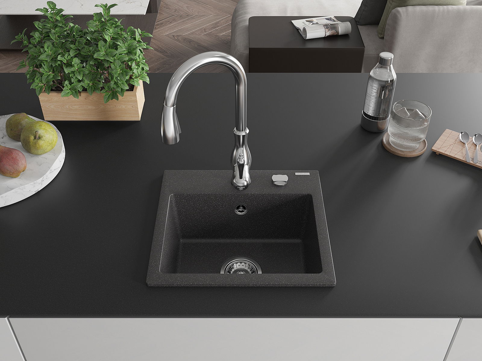 Мивката е направена от висококачествен гранит. Това е елегантно и най -вече практично допълнение към всяка кухня, независимо от нейния стил. Висококачествената и гранитна издръжливост осигуряват много години употреба.