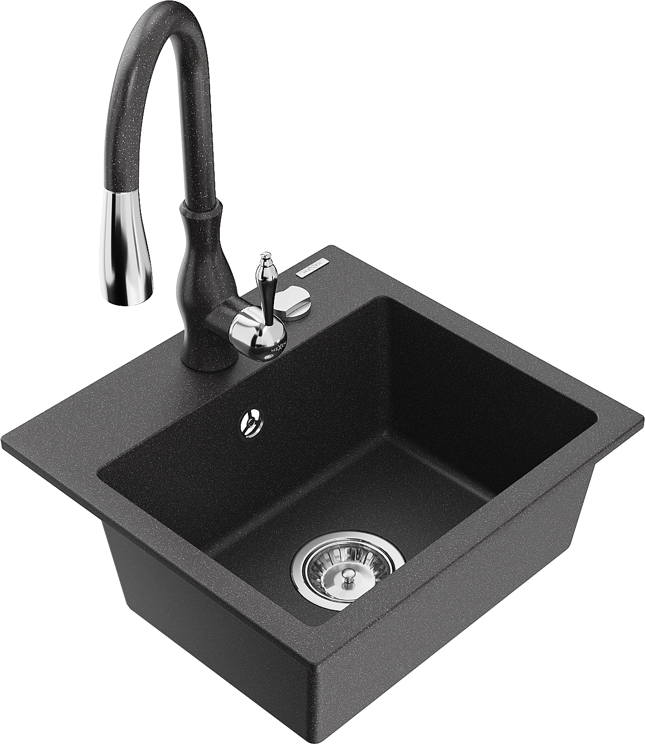 Mexen Milo гранитна мивка с 1 отделение с кухненски смесител Savita, черно на
