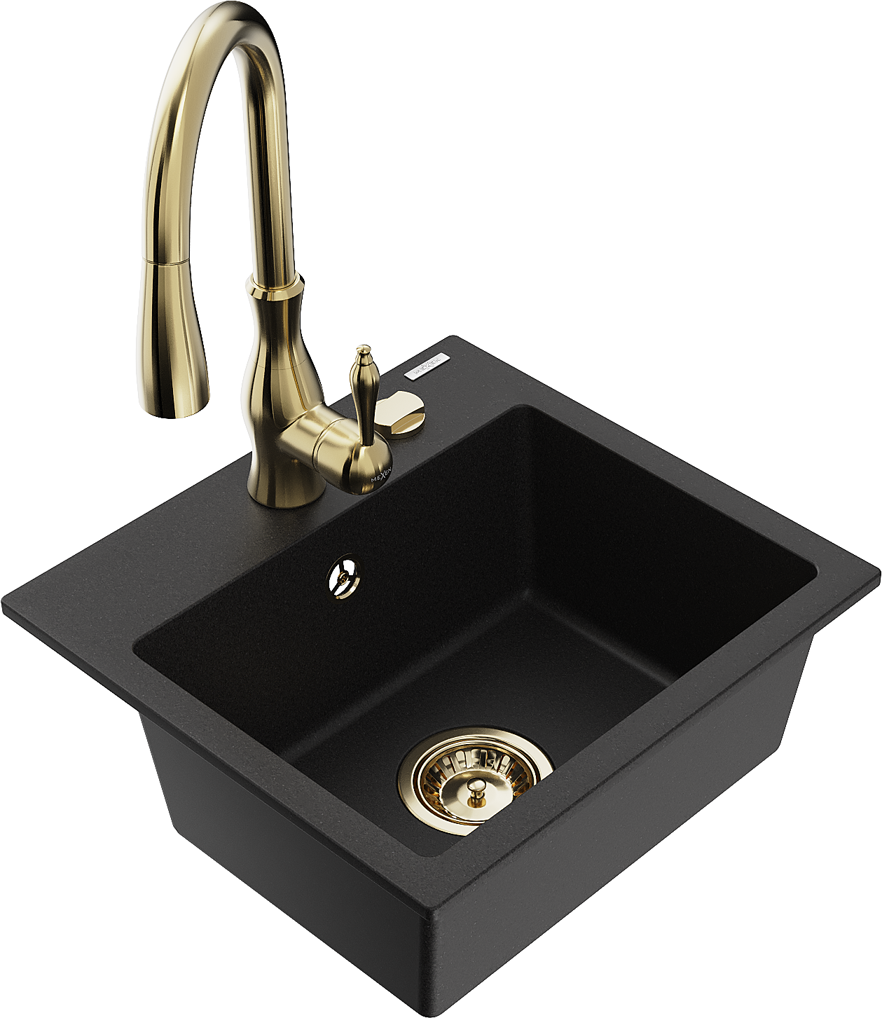 Mexen Milo смесителна мивка от гранит с 1 отделение със смесител за кухня Savita, черен - 6505-77-672601-50