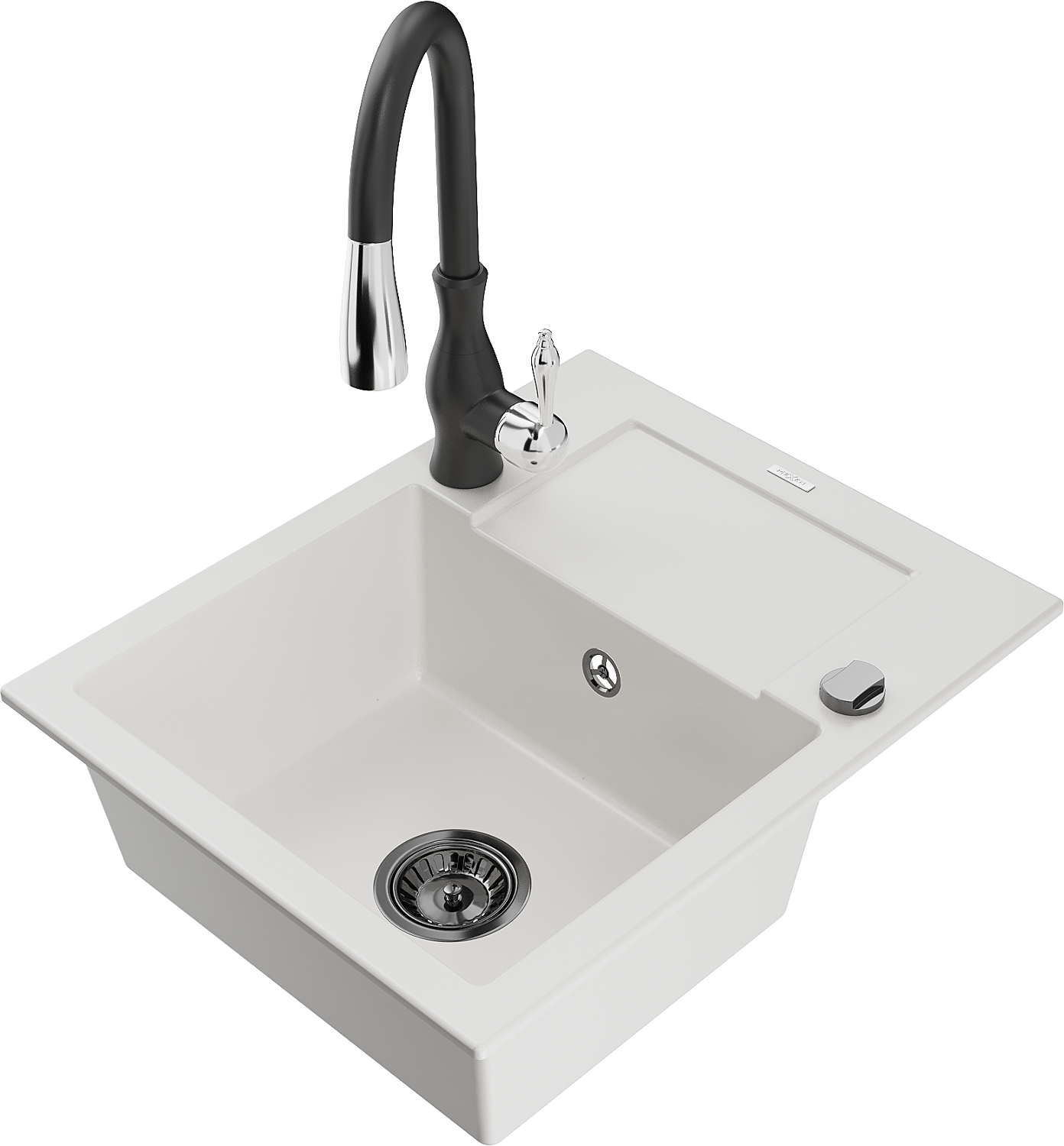 Mexen Enzo гранитна мивка с 1 камера с отцедник и кухненски смесител Savita, бял - 6506-20-672601-70