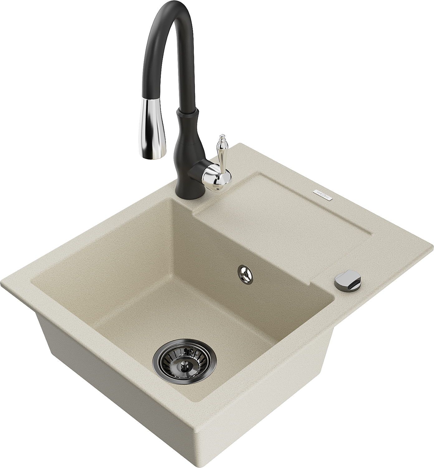 Mexen Enzo гранитна мивка с 1 отделение, сушилня и кухненски смесител Savita, бежов - 6506-69-672601-70