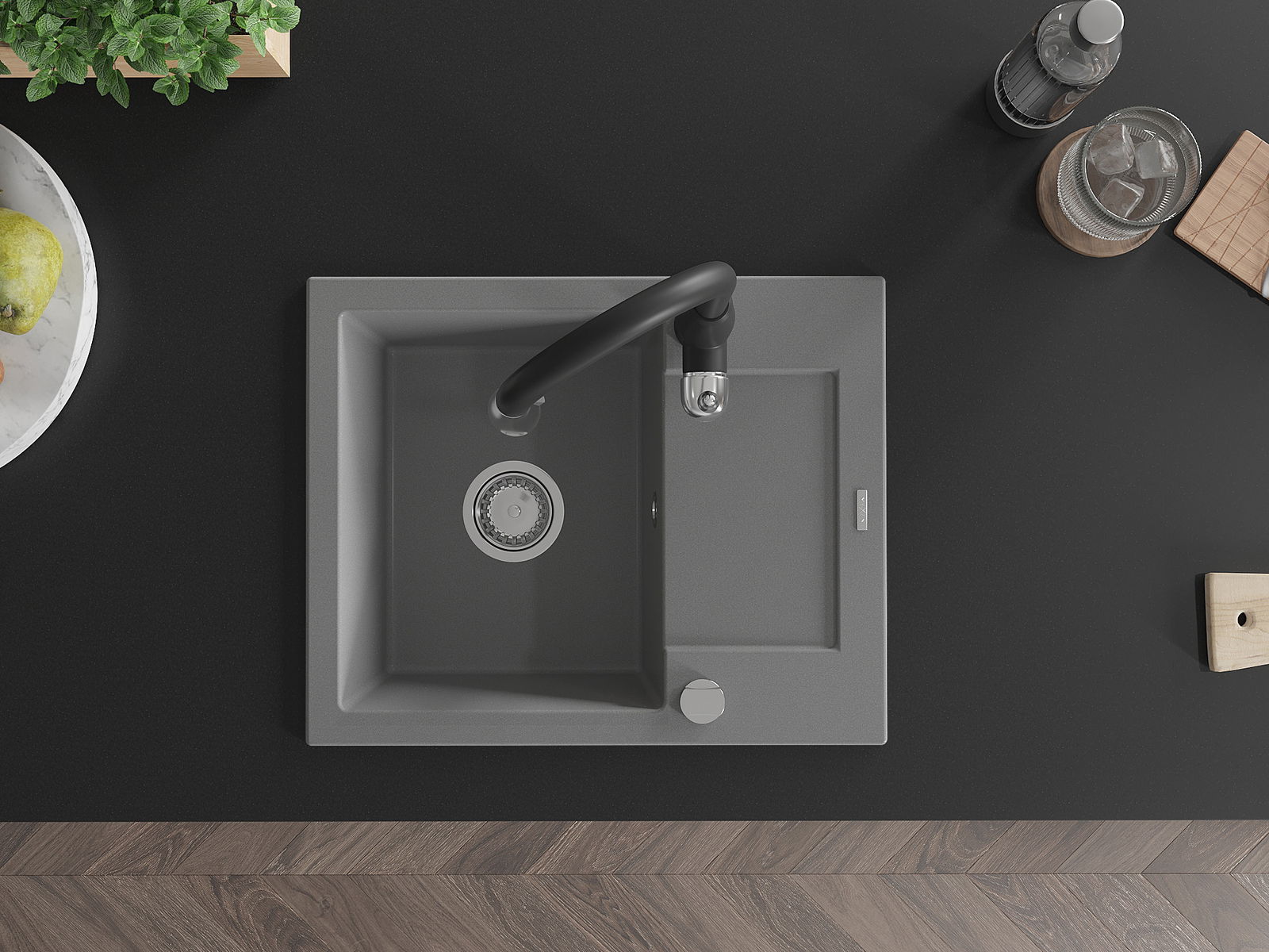 Мивката е направена от висококачествен гранит. Това е елегантно и най -вече практично допълнение към всяка кухня, независимо от нейния стил. Висококачествената и гранитна издръжливост осигуряват много години употреба.