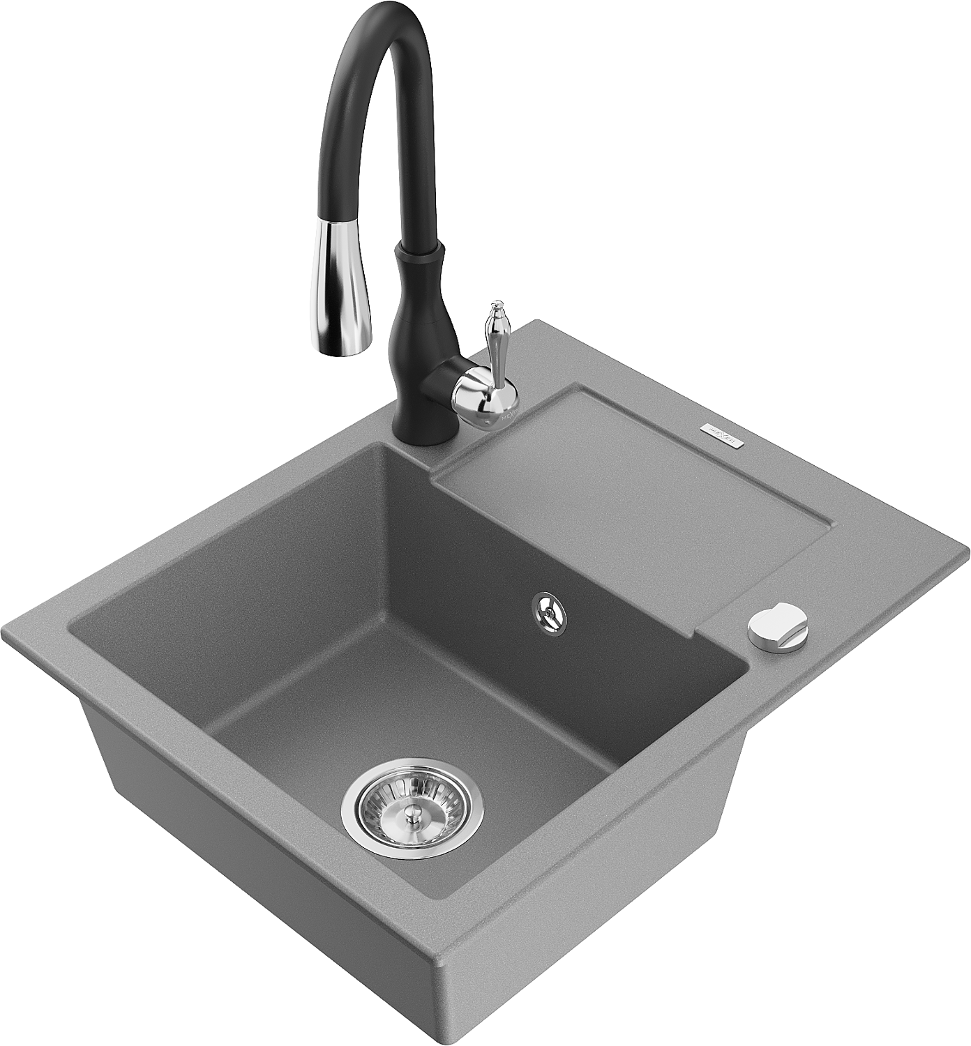 Mexen Enzo гранитна мивка с една камера с отцедник и кухненски смесител Savita, сив - 6506-71-672601-70