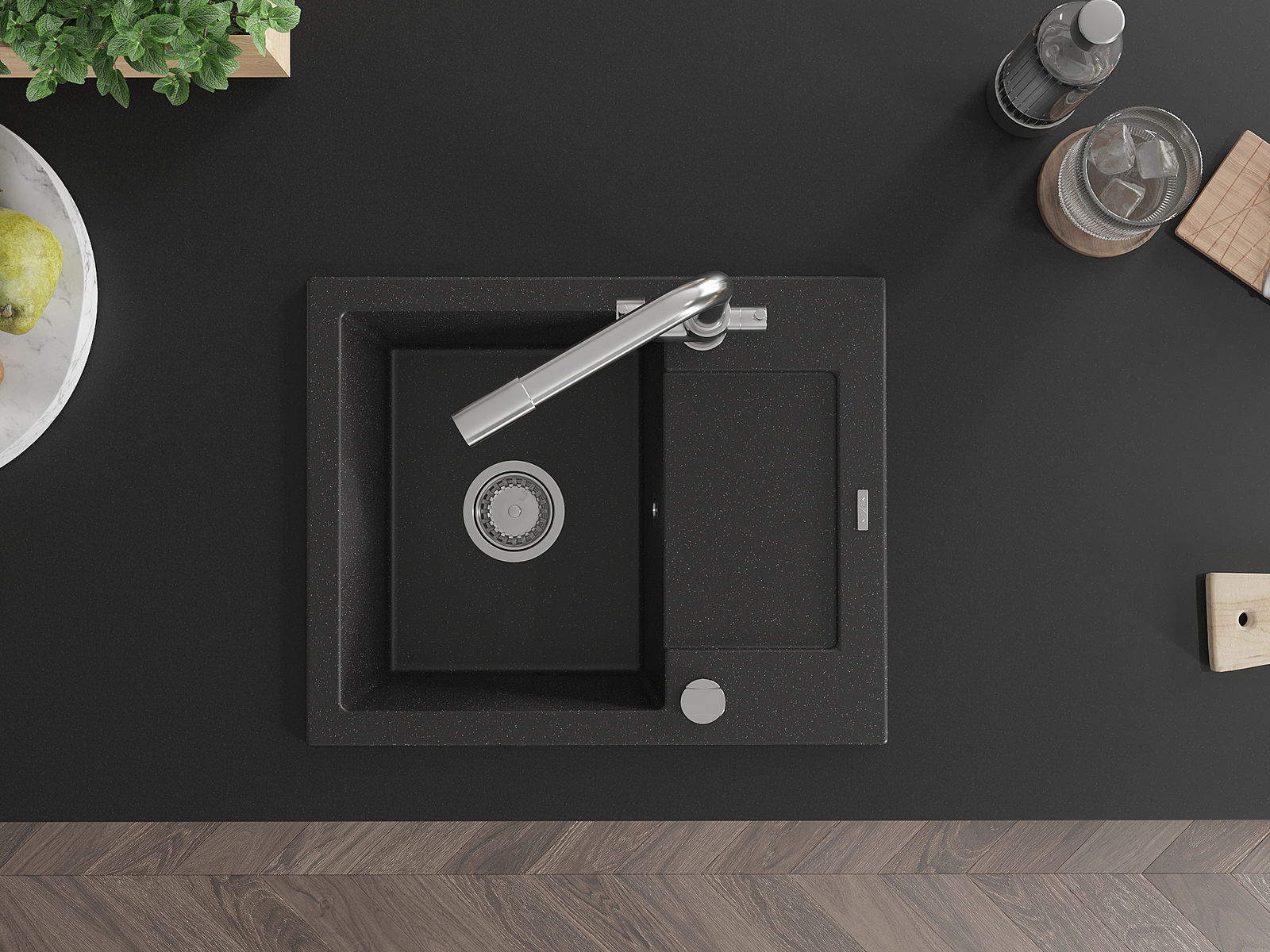 Мивката е направена от висококачествен гранит. Това е елегантно и най -вече практично допълнение към всяка кухня, независимо от нейния стил. Висококачествената и гранитна издръжливост осигуряват много години употреба.