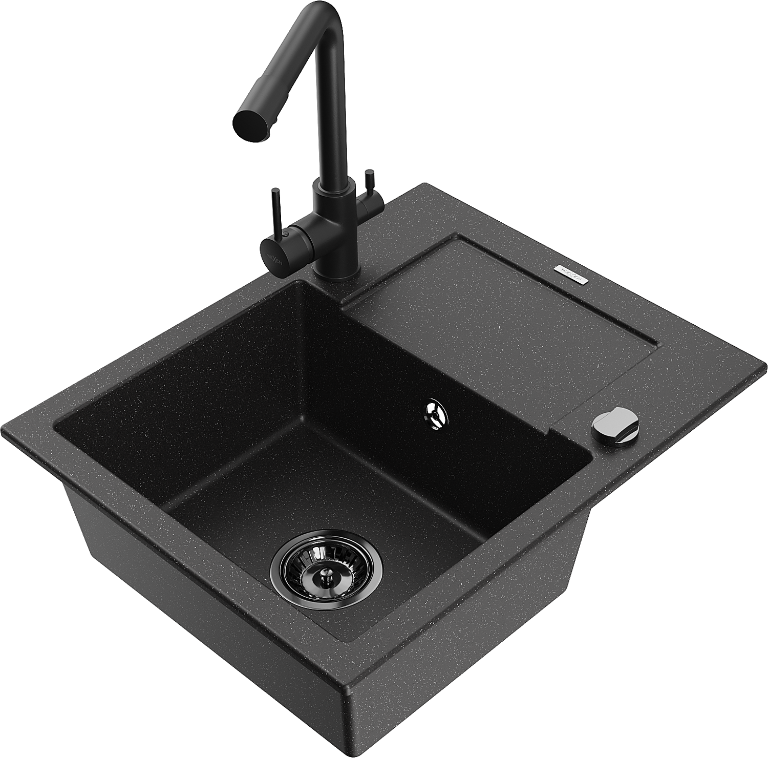 Mexen Enzo гранитна мивка с 1 корито с отцедник и кухненски смесител Duero, черен/сребърен металик - 6506-73-671600-70-B