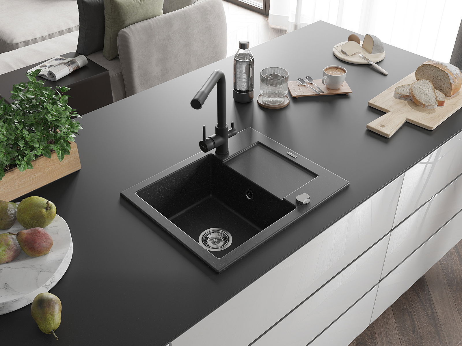 Мивката е направена от висококачествен гранит. Това е елегантно и най -вече практично допълнение към всяка кухня, независимо от нейния стил. Висококачествената и гранитна издръжливост осигуряват много години употреба.