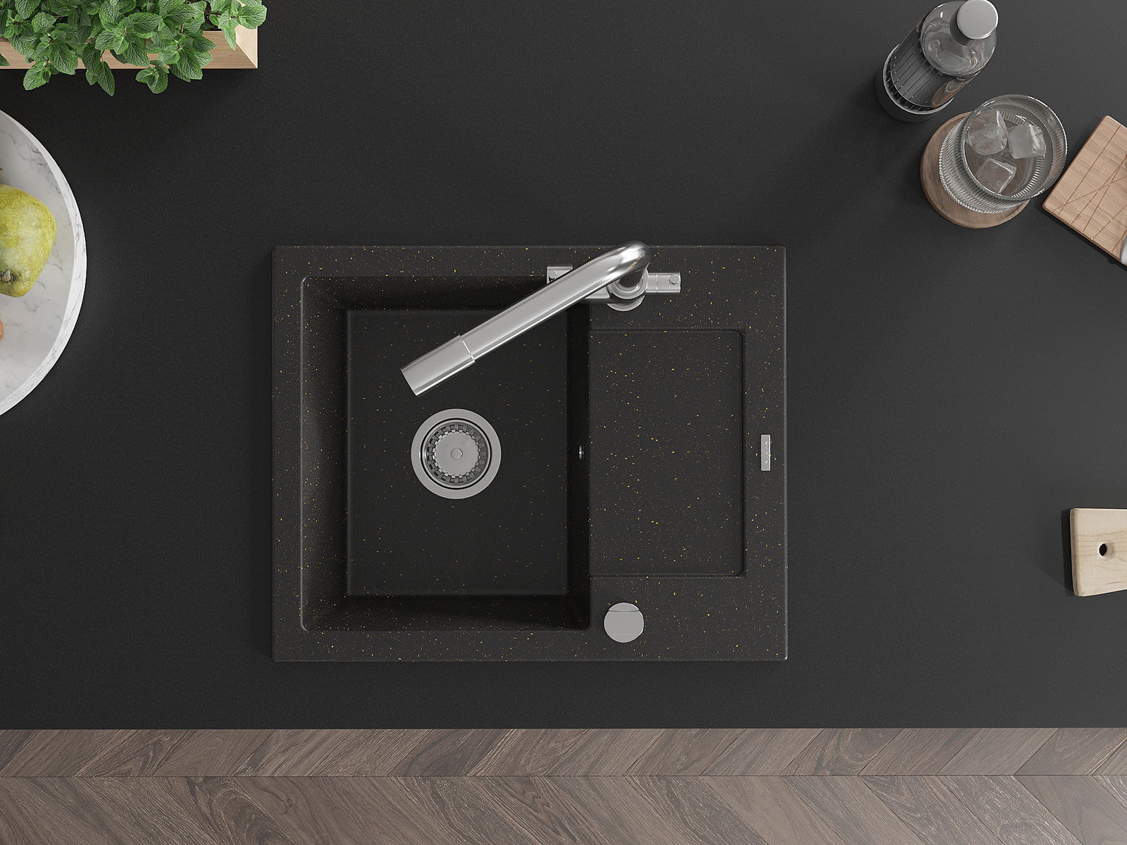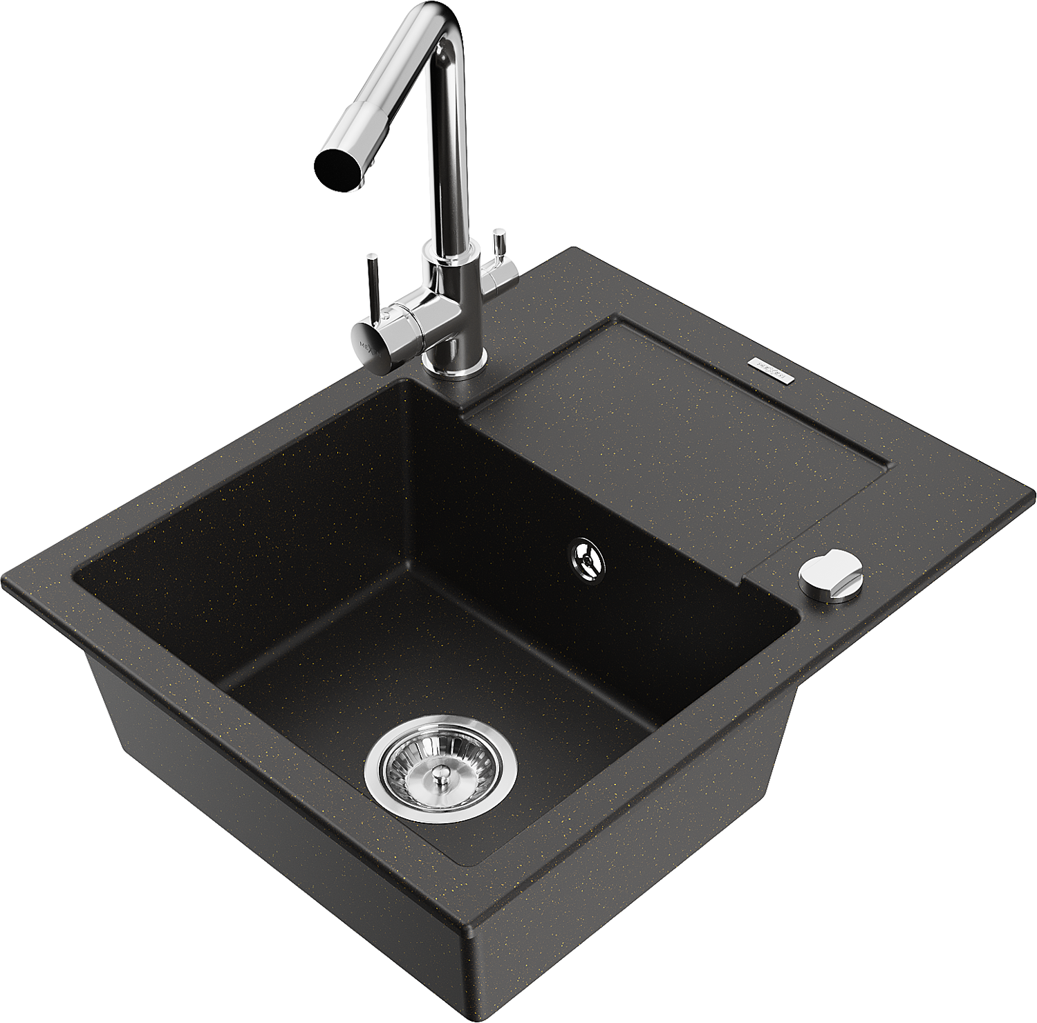 Mexen Enzo еднокамерна гранитна мивка със сушилник и кухненски смесител Duero, черен/златен металик - 6506-75-671600-00