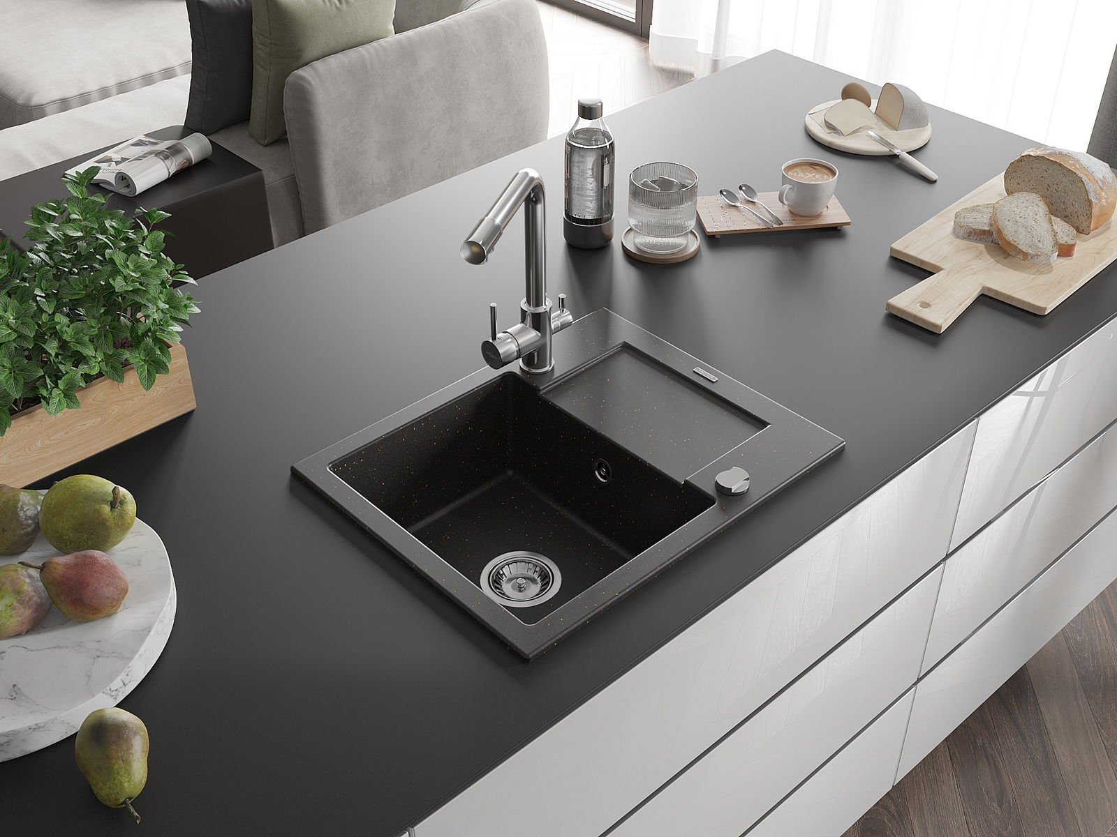 Мивката е направена от висококачествен гранит. Това е елегантно и най -вече практично допълнение към всяка кухня, независимо от нейния стил. Висококачествената и гранитна издръжливост осигуряват много години употреба.
