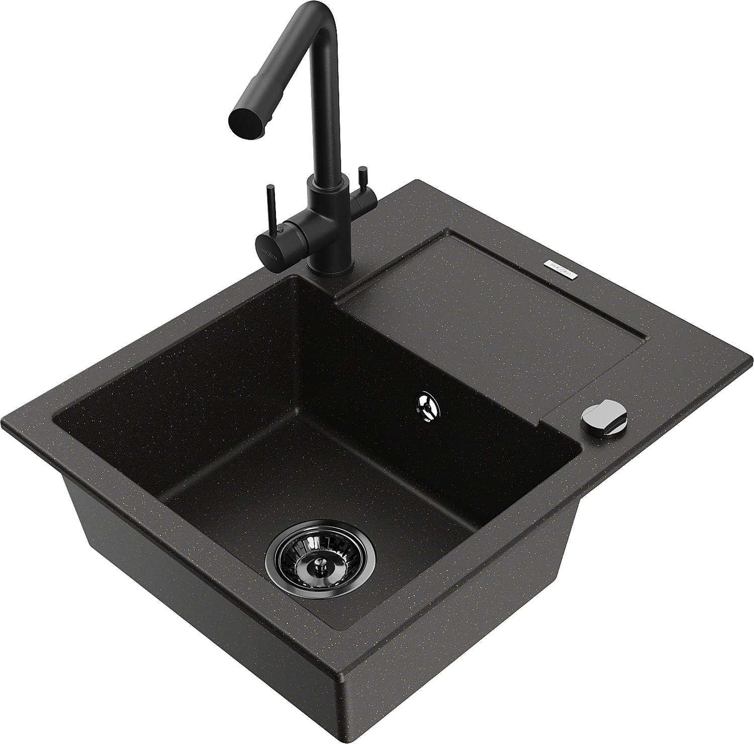 Mexen Enzo гранитна мивка с 1 камера с отцедник и кухненски смесител Duero,