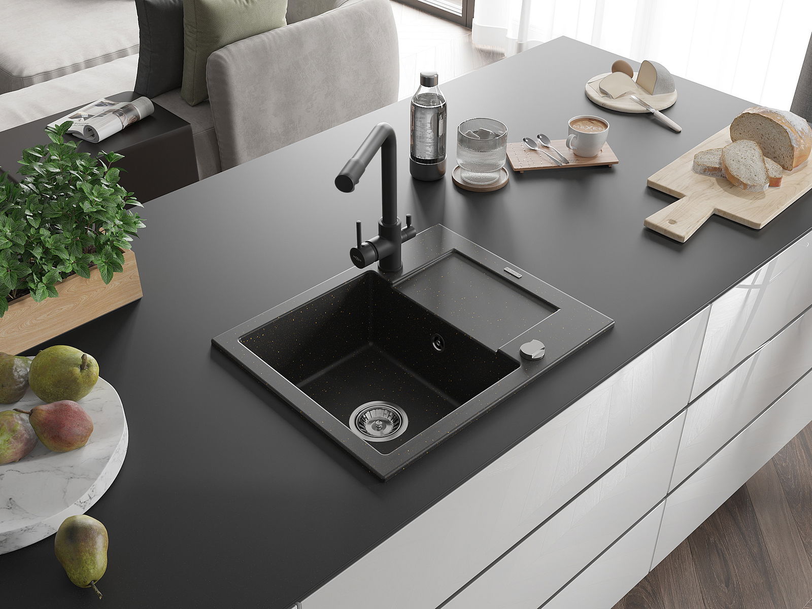 Mexen Enzo гранитна кухненска мивка с 1 корито, с отцедник и кухненски