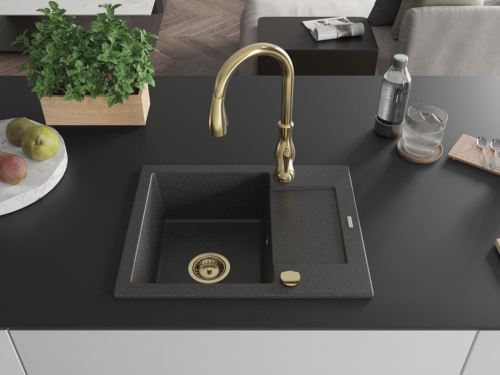 Мивката е направена от висококачествен гранит. Това е елегантно и най -вече практично допълнение към всяка кухня, независимо от нейния стил. Висококачествената и гранитна издръжливост осигуряват много години употреба.