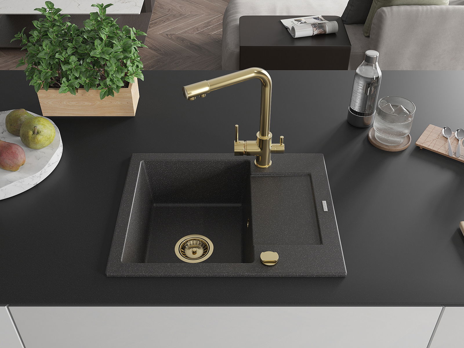 Мивката е направена от висококачествен гранит. Това е елегантно и най -вече практично допълнение към всяка кухня, независимо от нейния стил. Висококачествената и гранитна издръжливост осигуряват много години употреба.