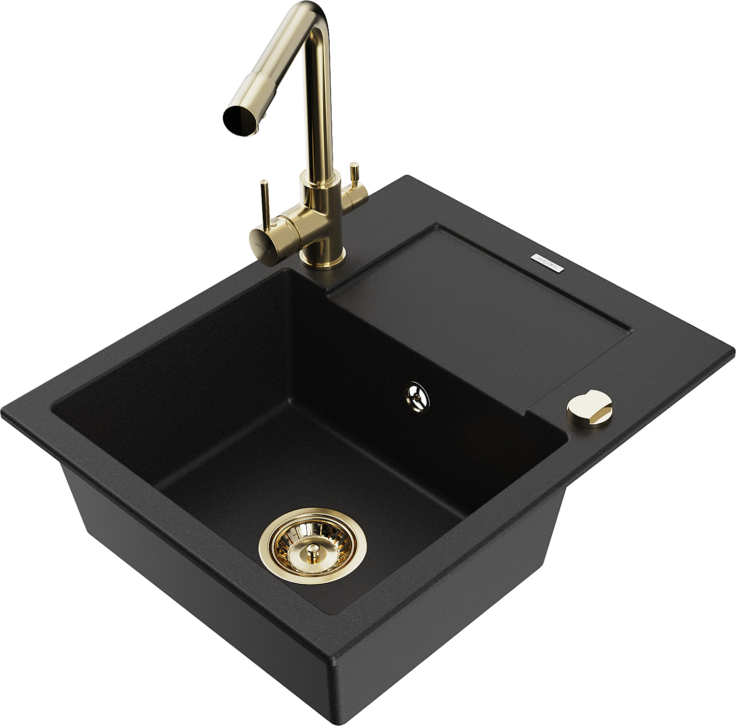 Mexen Enzo гранитна мивка с 1 отделение с дренаж и кухненски смесител Duero, черен - 6506-77-671600-50