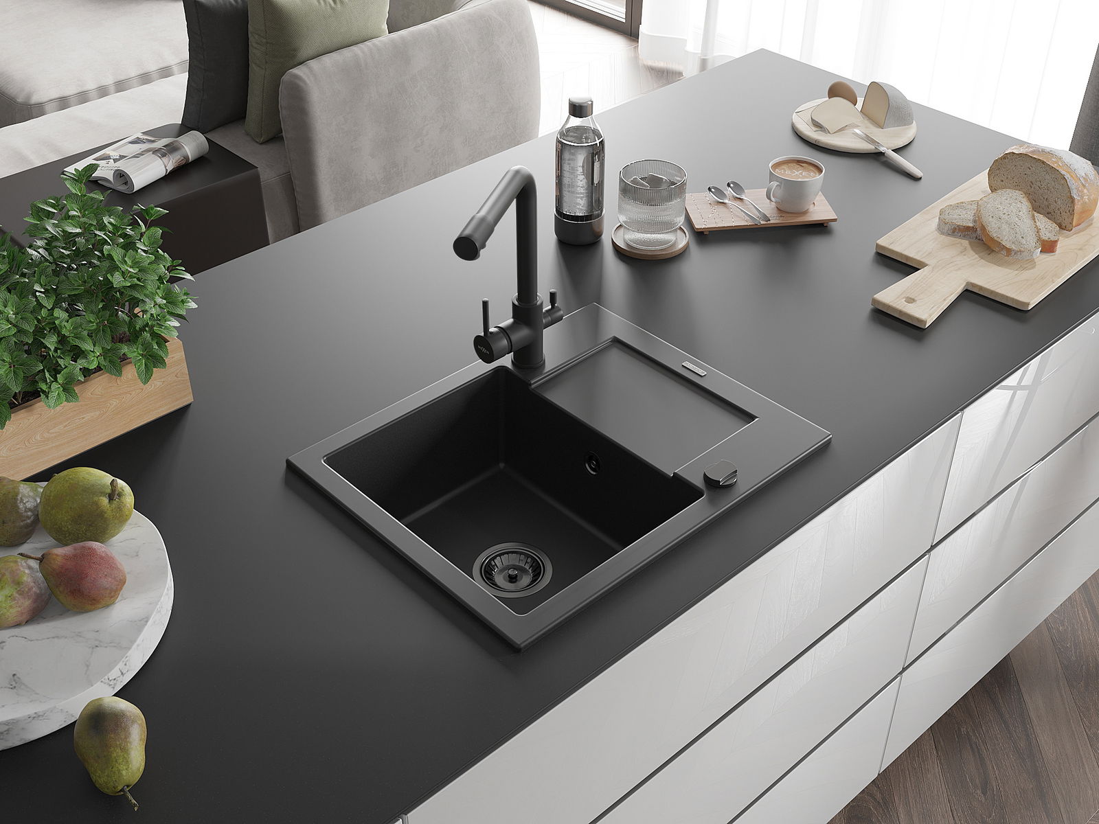 Мивката е направена от висококачествен гранит. Това е елегантно и най -вече практично допълнение към всяка кухня, независимо от нейния стил. Висококачествената и гранитна издръжливост осигуряват много години употреба.