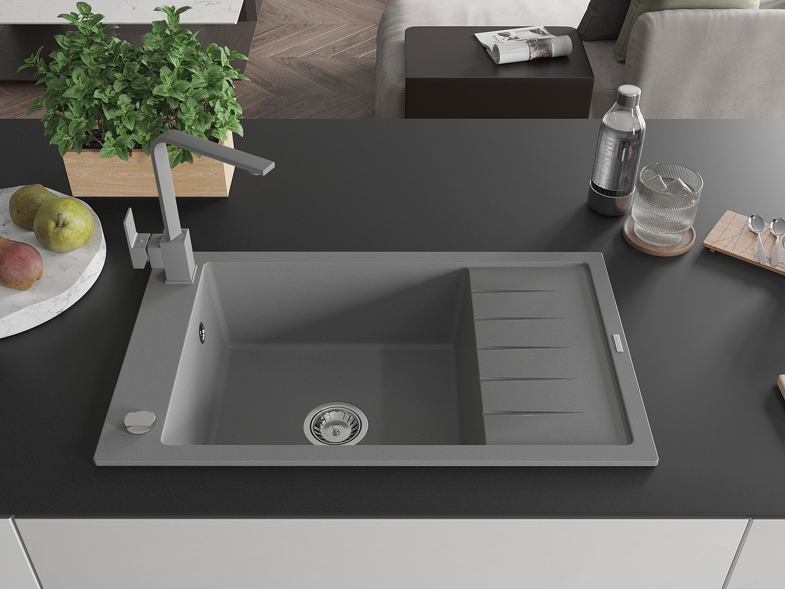 Мивката е направена от висококачествен гранит. Това е елегантно и най -вече практично допълнение към всяка кухня, независимо от нейния стил. Висококачествената и гранитна издръжливост осигуряват много години употреба.