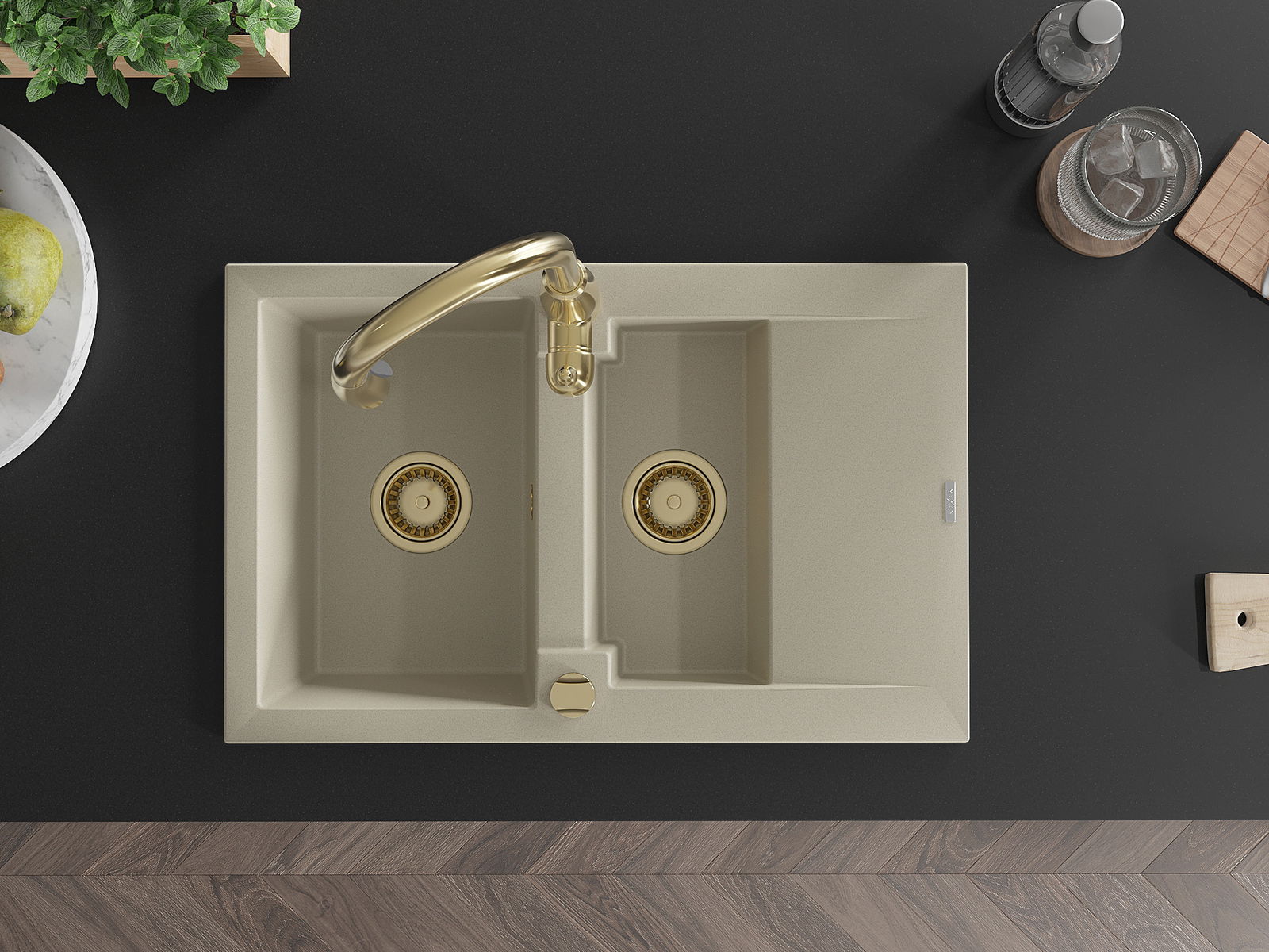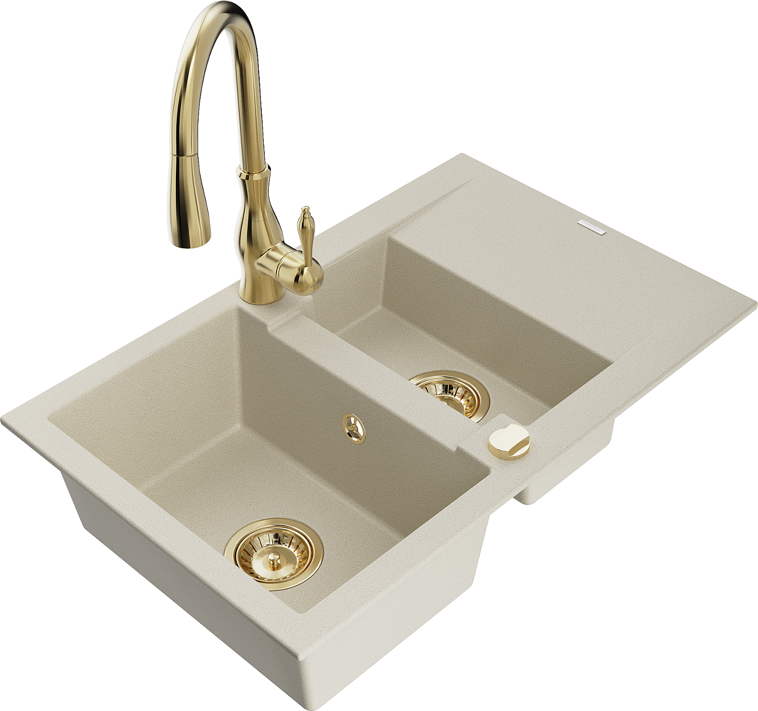 Mexen Gaspar гранитна мивка 1,5-коморна с отцедник и кухненски смесител Savita, бежов - 6507-69-672601-50
